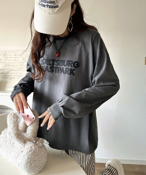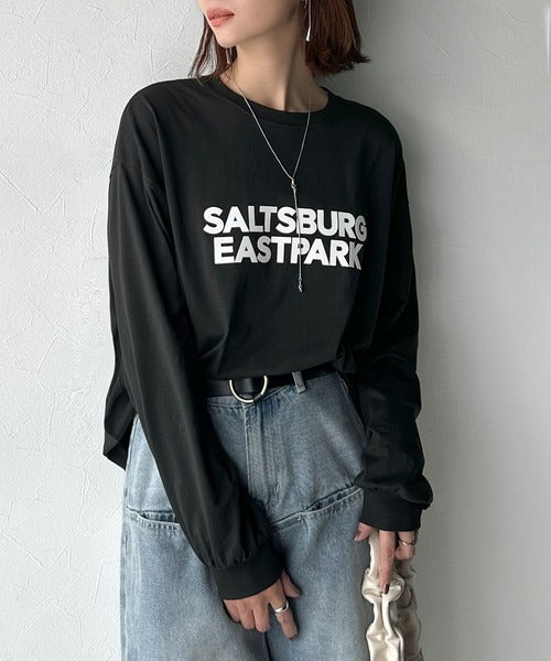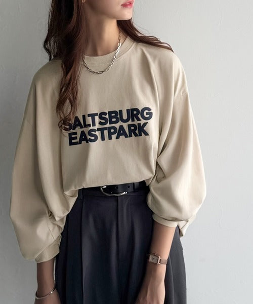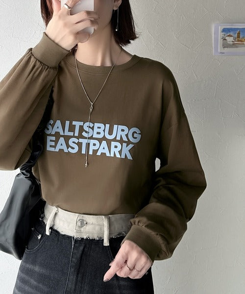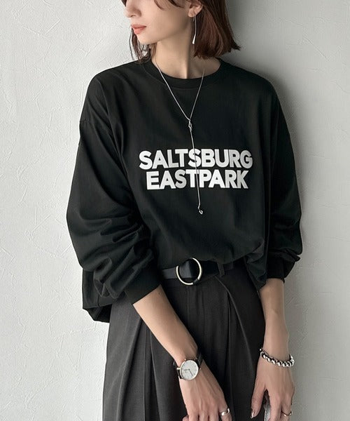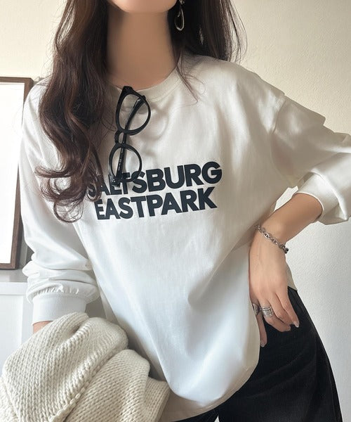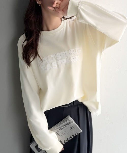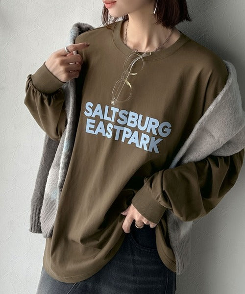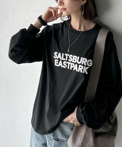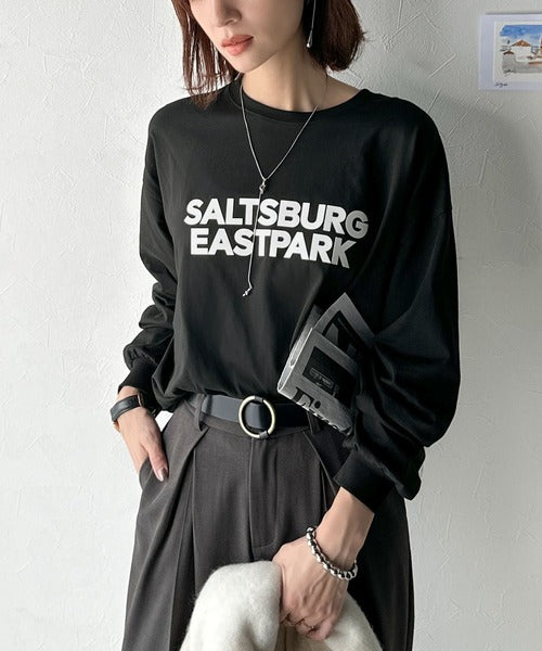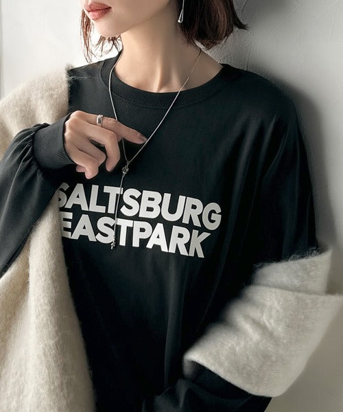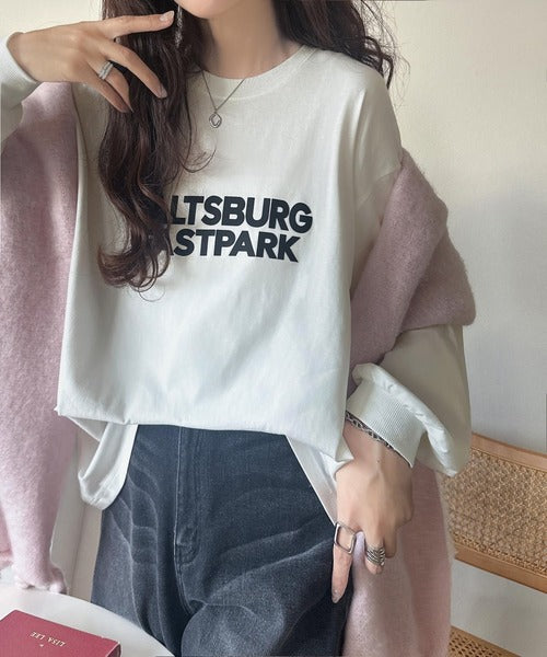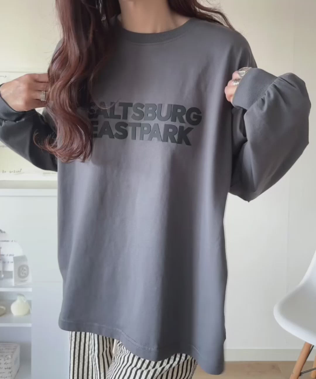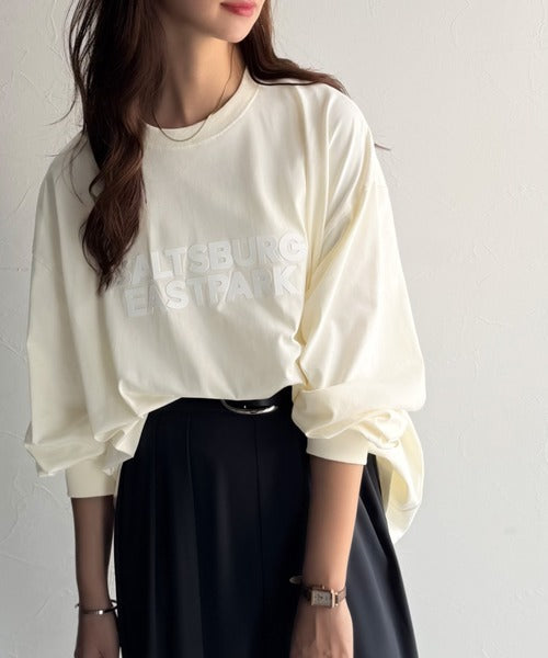 大人シンプル。ベーシックに映える厚盛プリント♪綿100%英字ロゴロンT (長袖) ce1330053