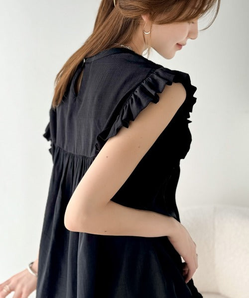 袖フリルがフレンチスリーブのようなシルエットを描き、