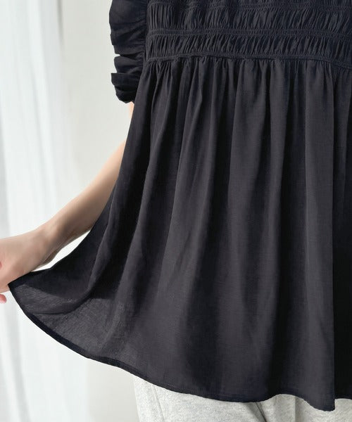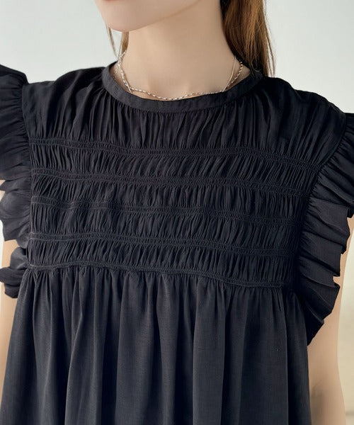 全方向、大人フェミニン!胸元ギャザーフリルスリーブAラインブラウス ce1360002