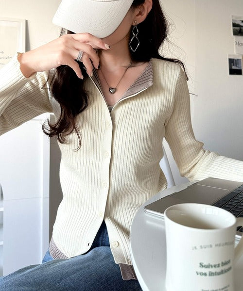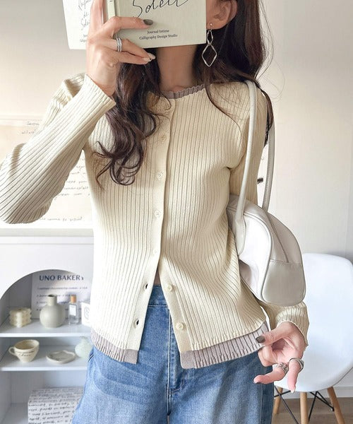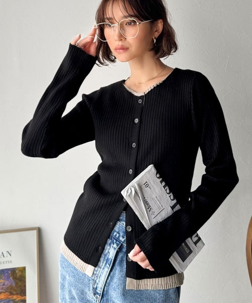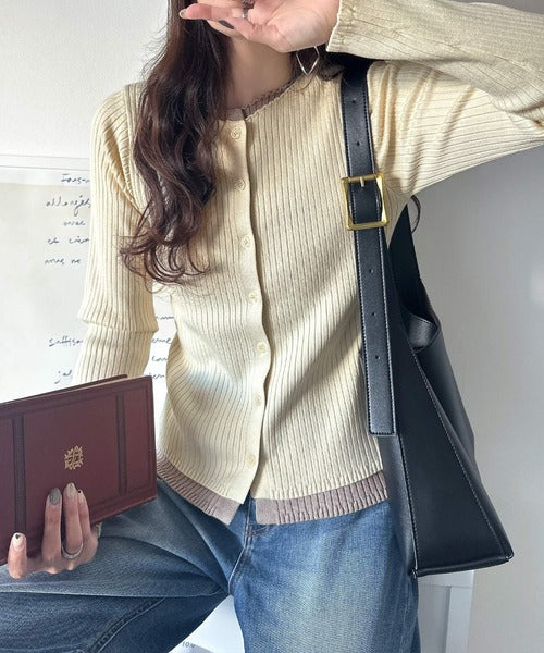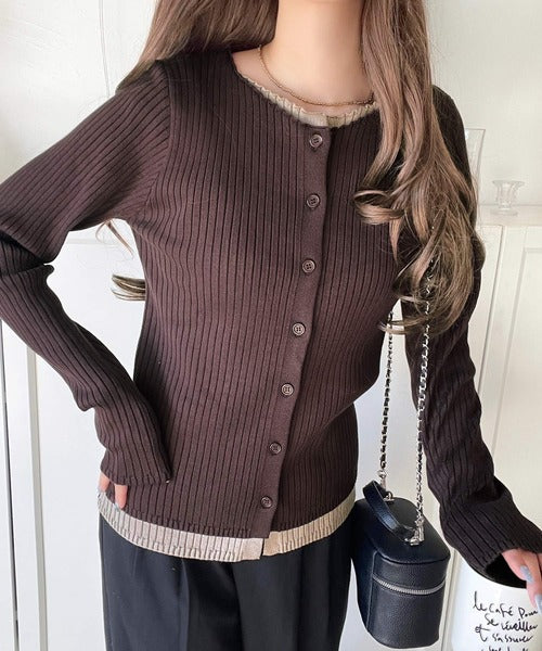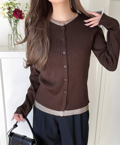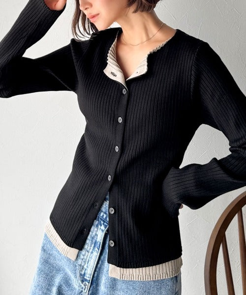 レイヤード風デザインでこなれ感アップ◎重ね着風配色リブカーディガントップス(長袖) ce1360005
