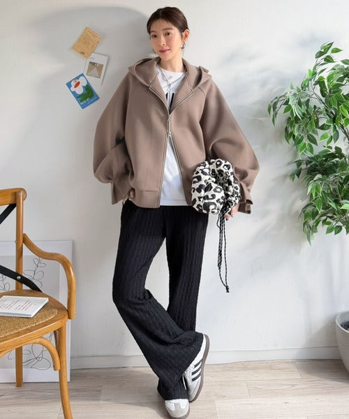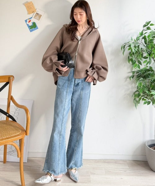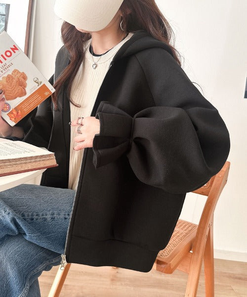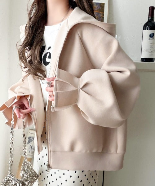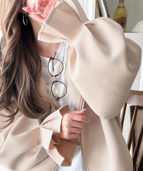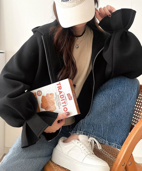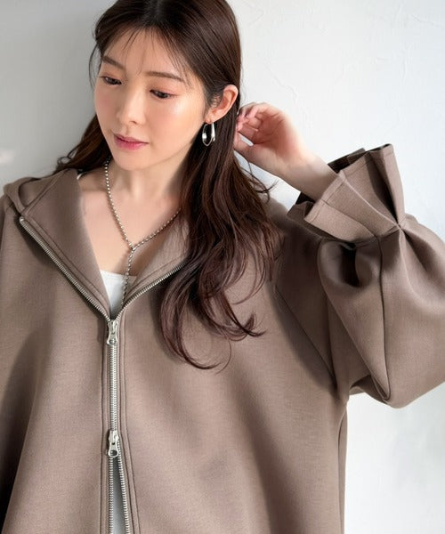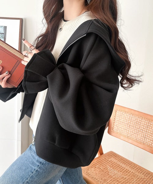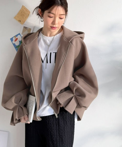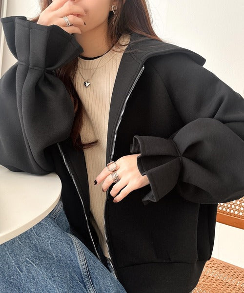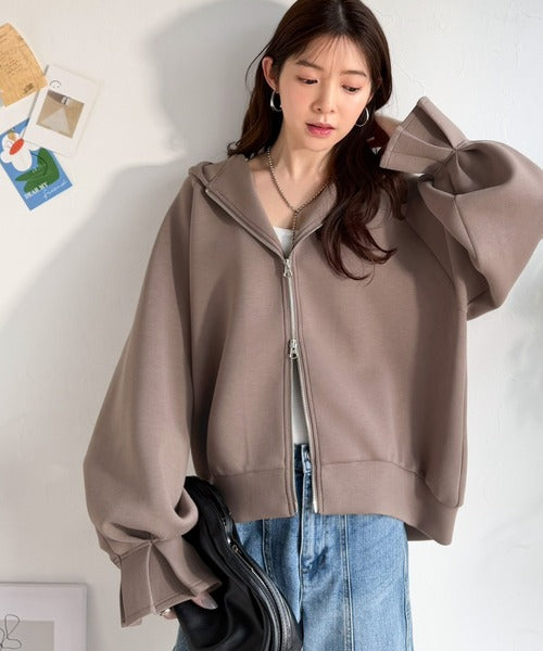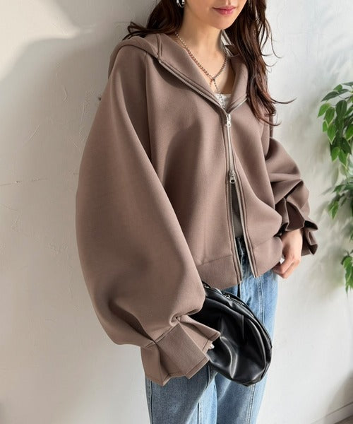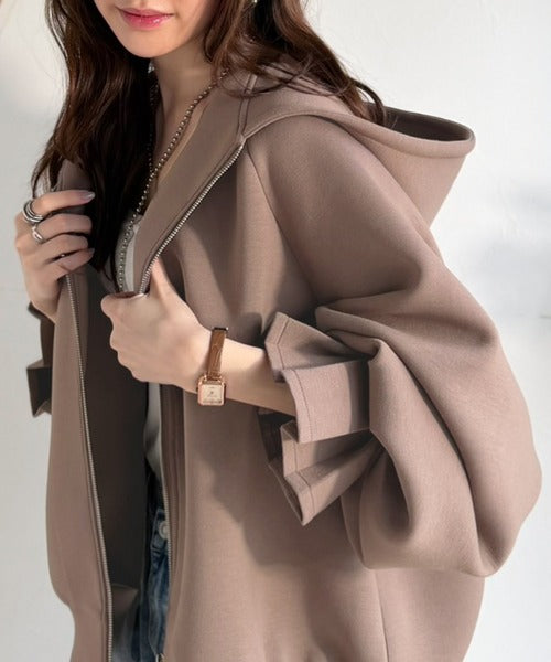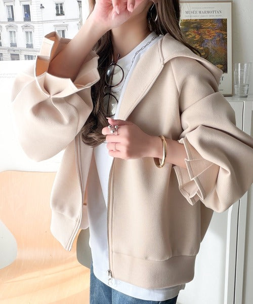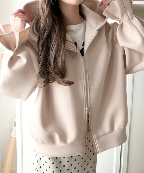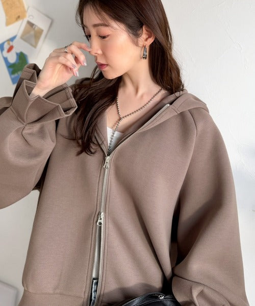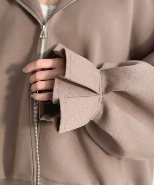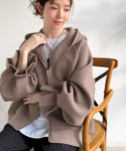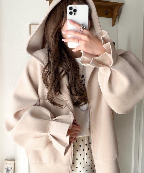 ふんわり、ゆったり、袖にキュン♪ダブルジップキャンディスリーブマシュマロダンボールパーカー ce1410001