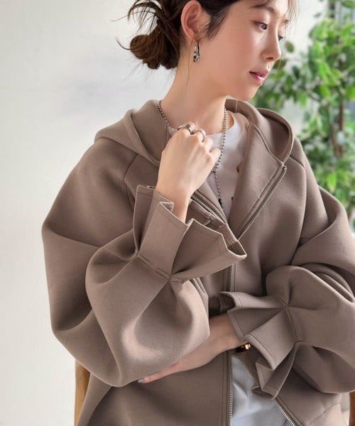 立体感のあるフードとボリューム袖が、カジュアルな中に女性らしさとトレンド感をプラスします。