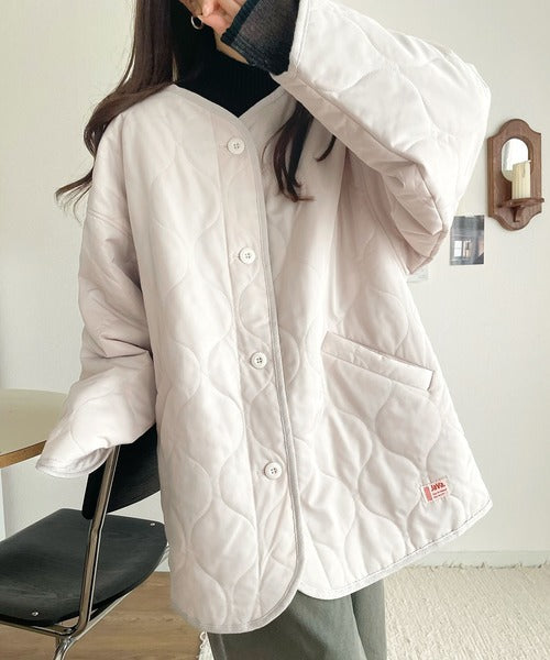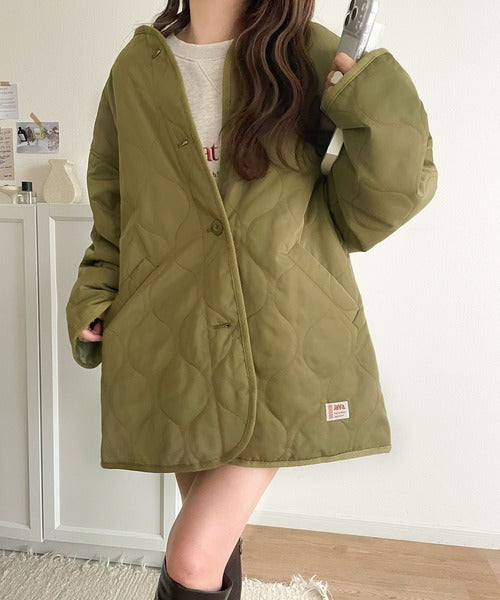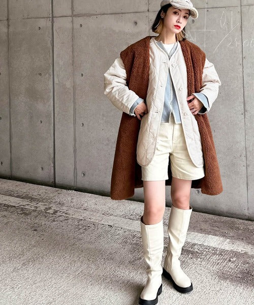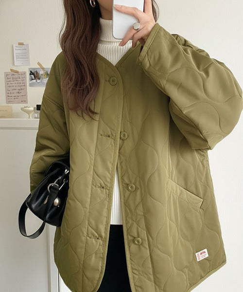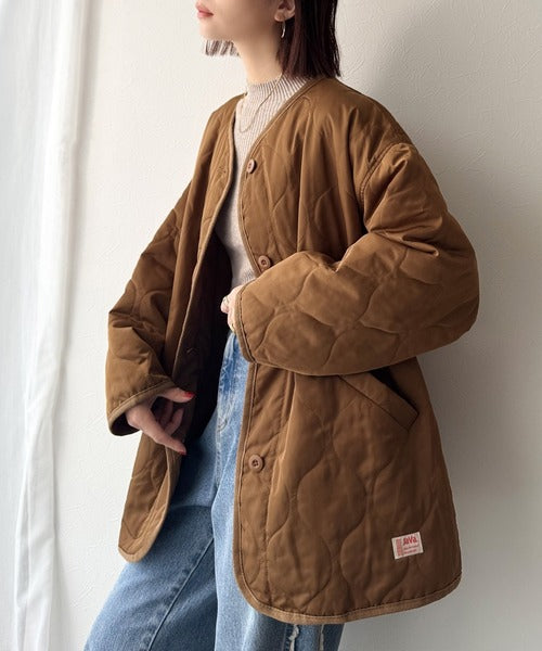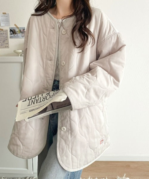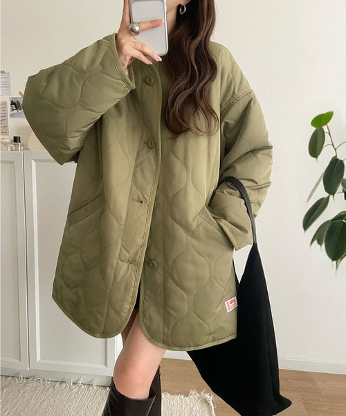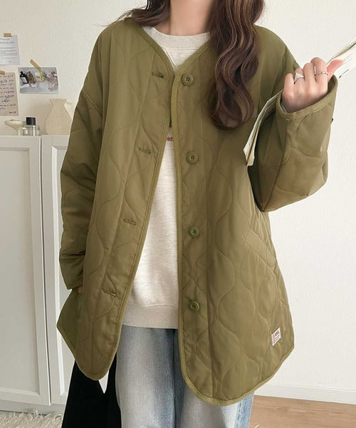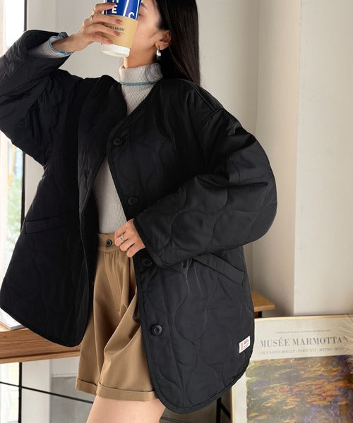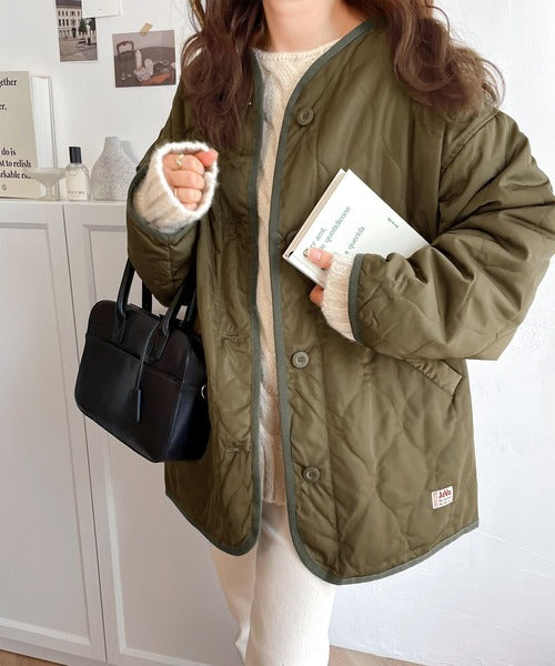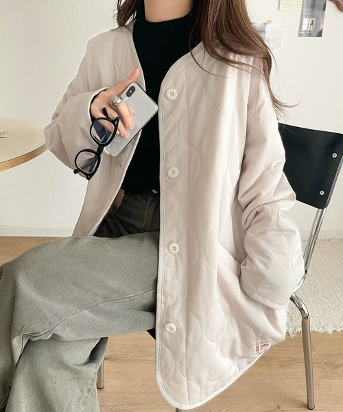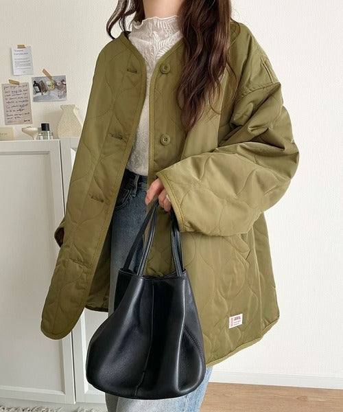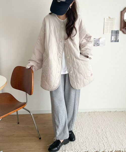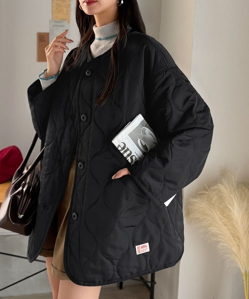 《JaVaジャバ コラボ》大人のこなれ感。ノーカラーキルティングコート clf014