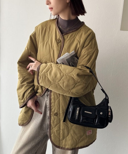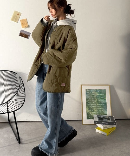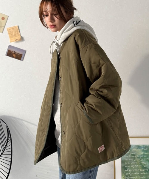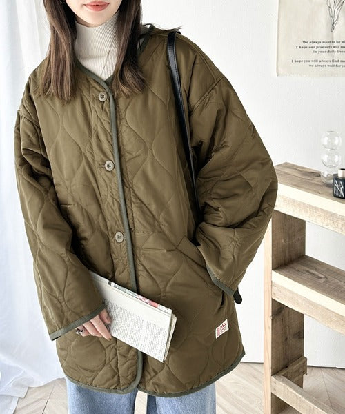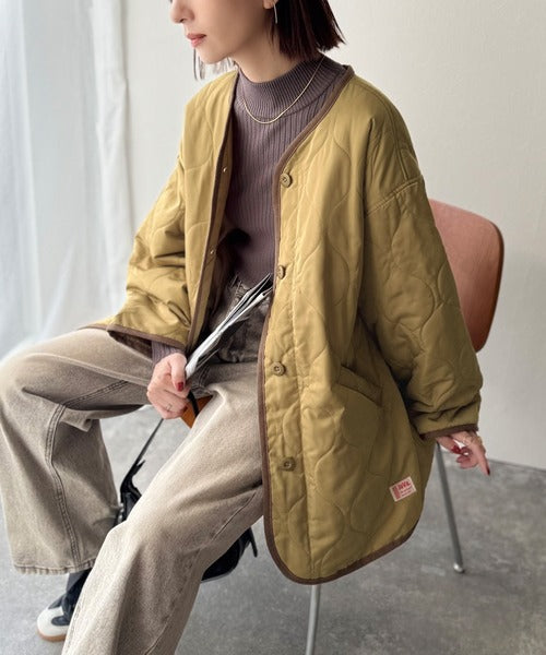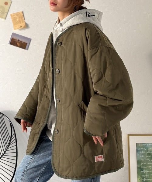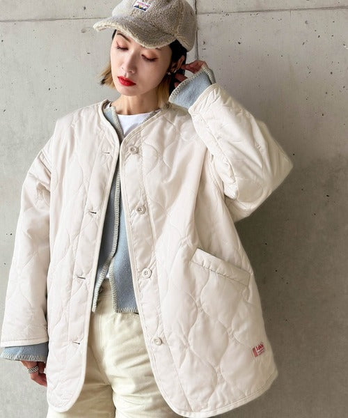 普段小さいサイズを着ている方にも大きいサイズでキルティングコートとしても着て頂きやすいアイテムです。