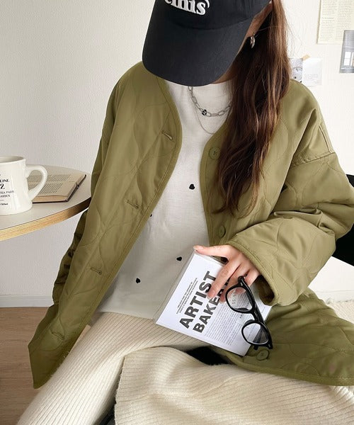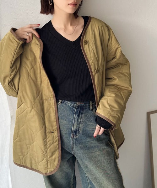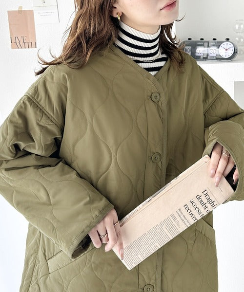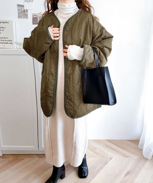 ざっくりと羽織れる大人上品なアウターのキルティングコート。