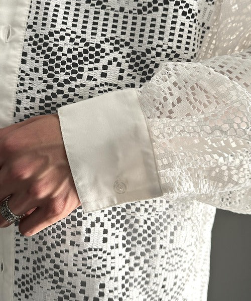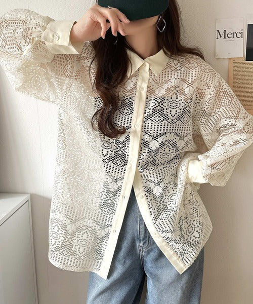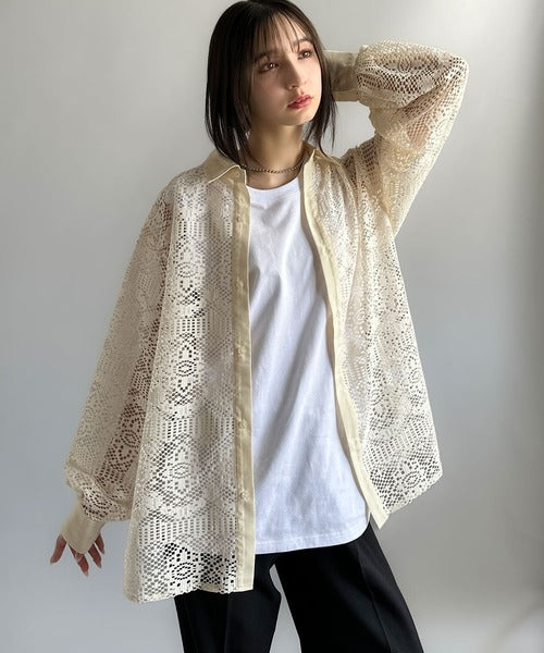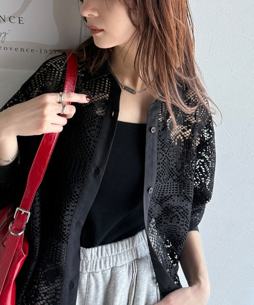 春夏にぴったりな透け感が特徴のレースシャツ。