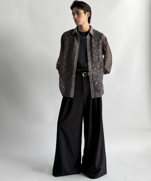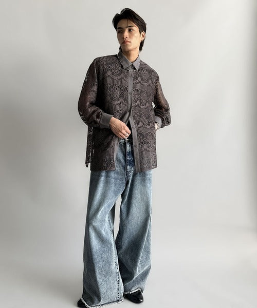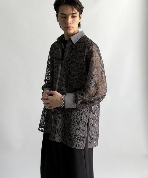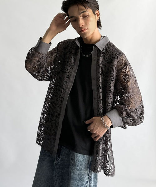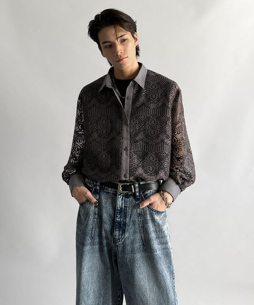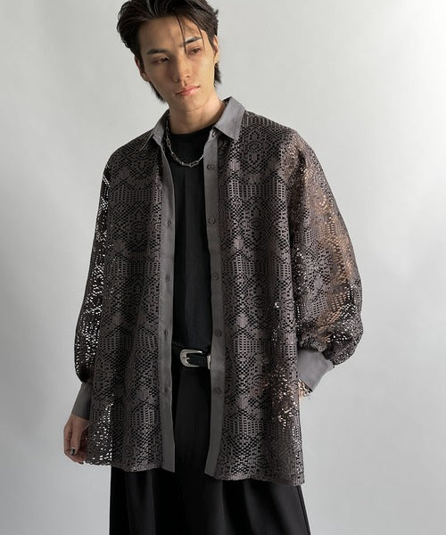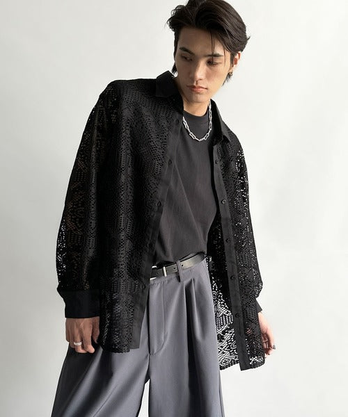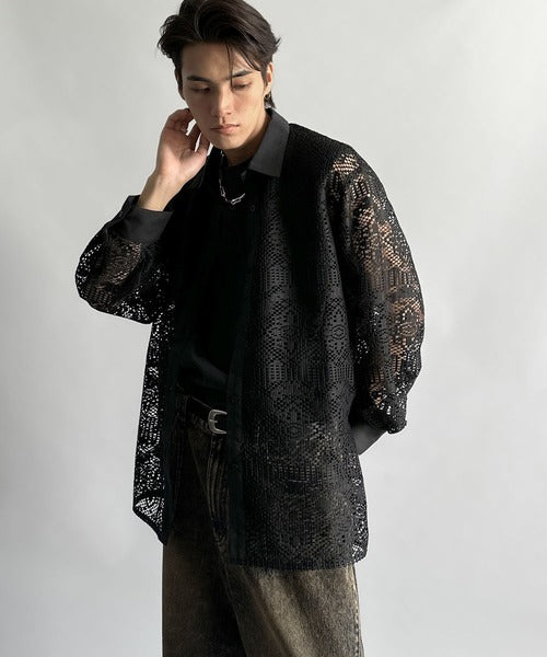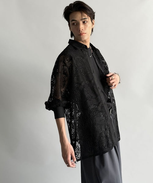 《メンズもレディースもお揃いで着れちゃう、レースオーバーシャツ》