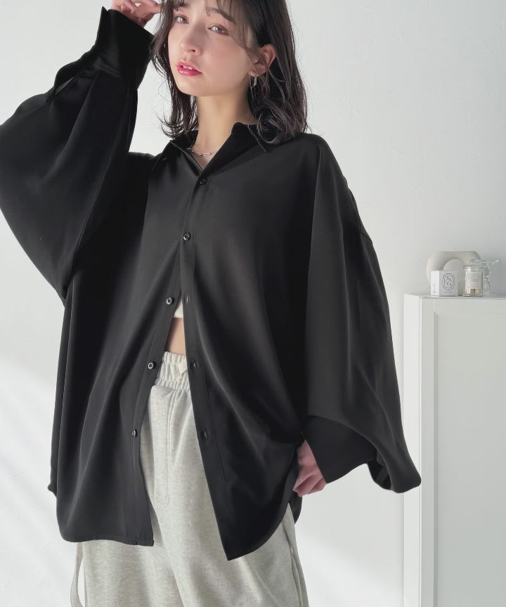 どんなシーンでも映える。とろみポリツイルオーバーサイズシャツ(長袖) cm1070141