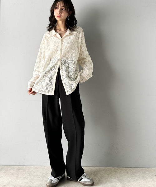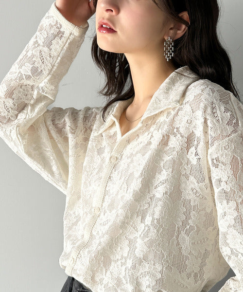 大人上品さが魅力◎ルーズシルエット 花柄レースオーバーシャツ(長袖) cm1240070