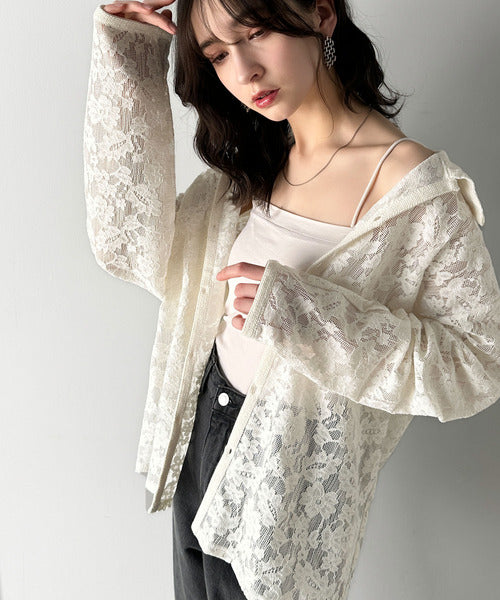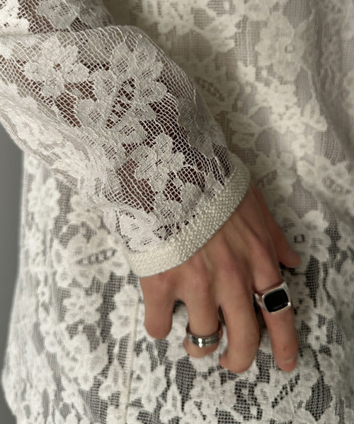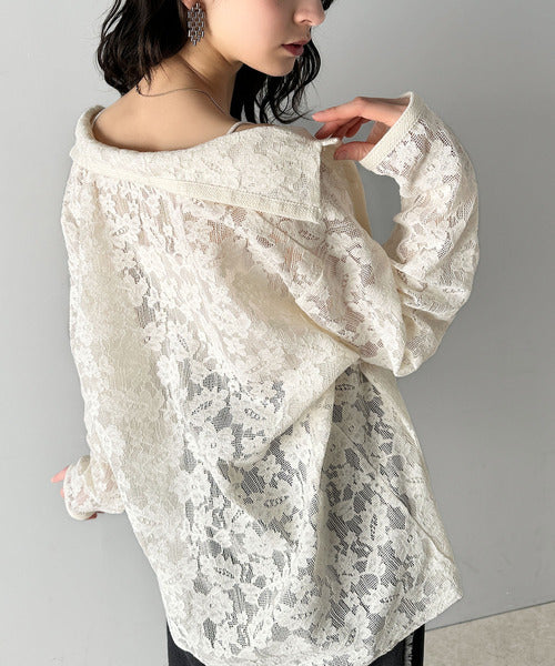 大人上品なオーバーシャツは、繊細な花柄を表現したフィレレース生地を