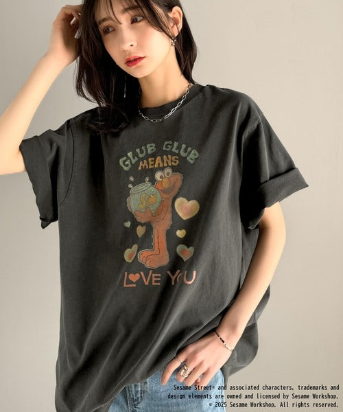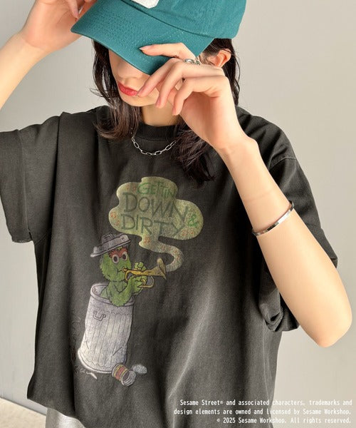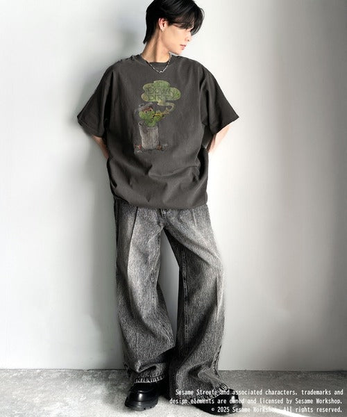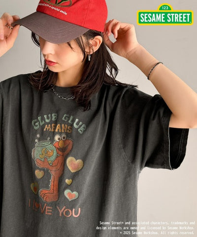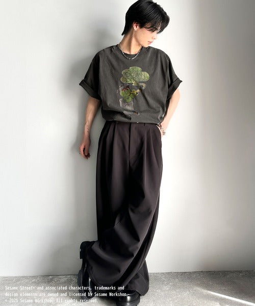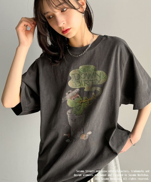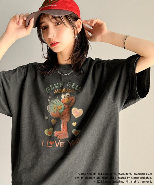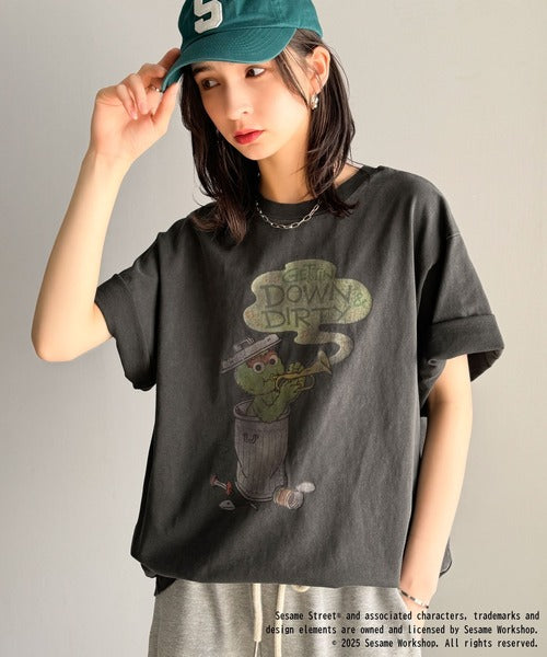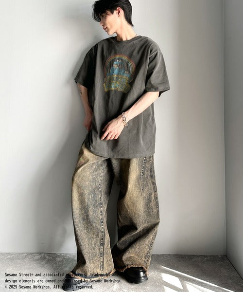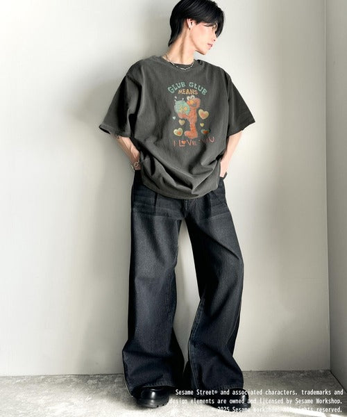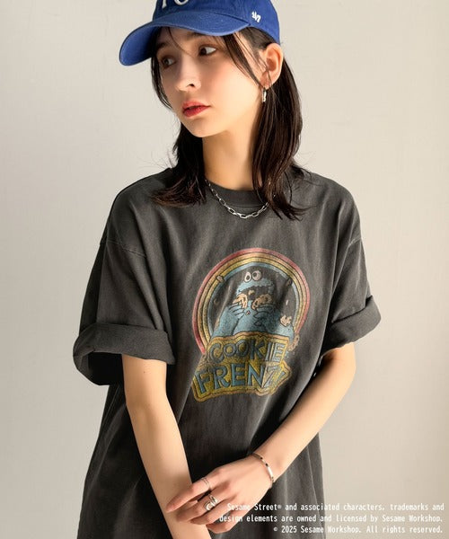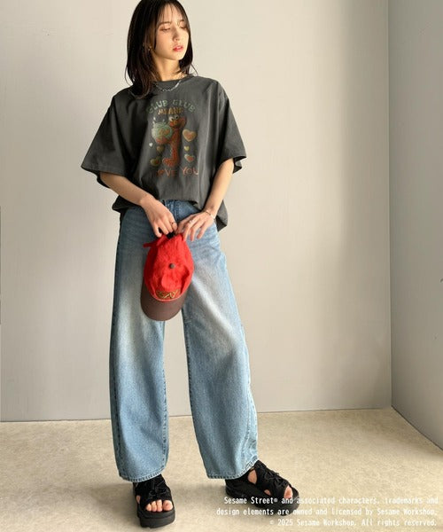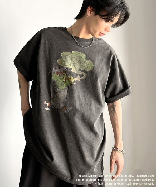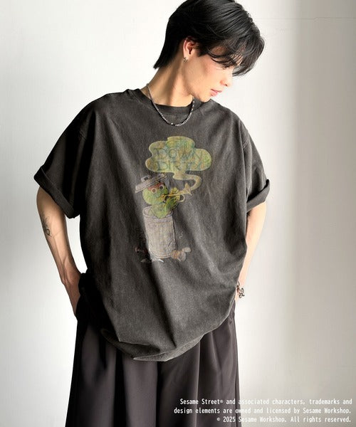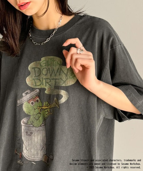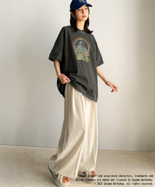 大人カジュアルにハマる。綿100%セサミキャラピグメント加工ビッグTシャツ cm1330004