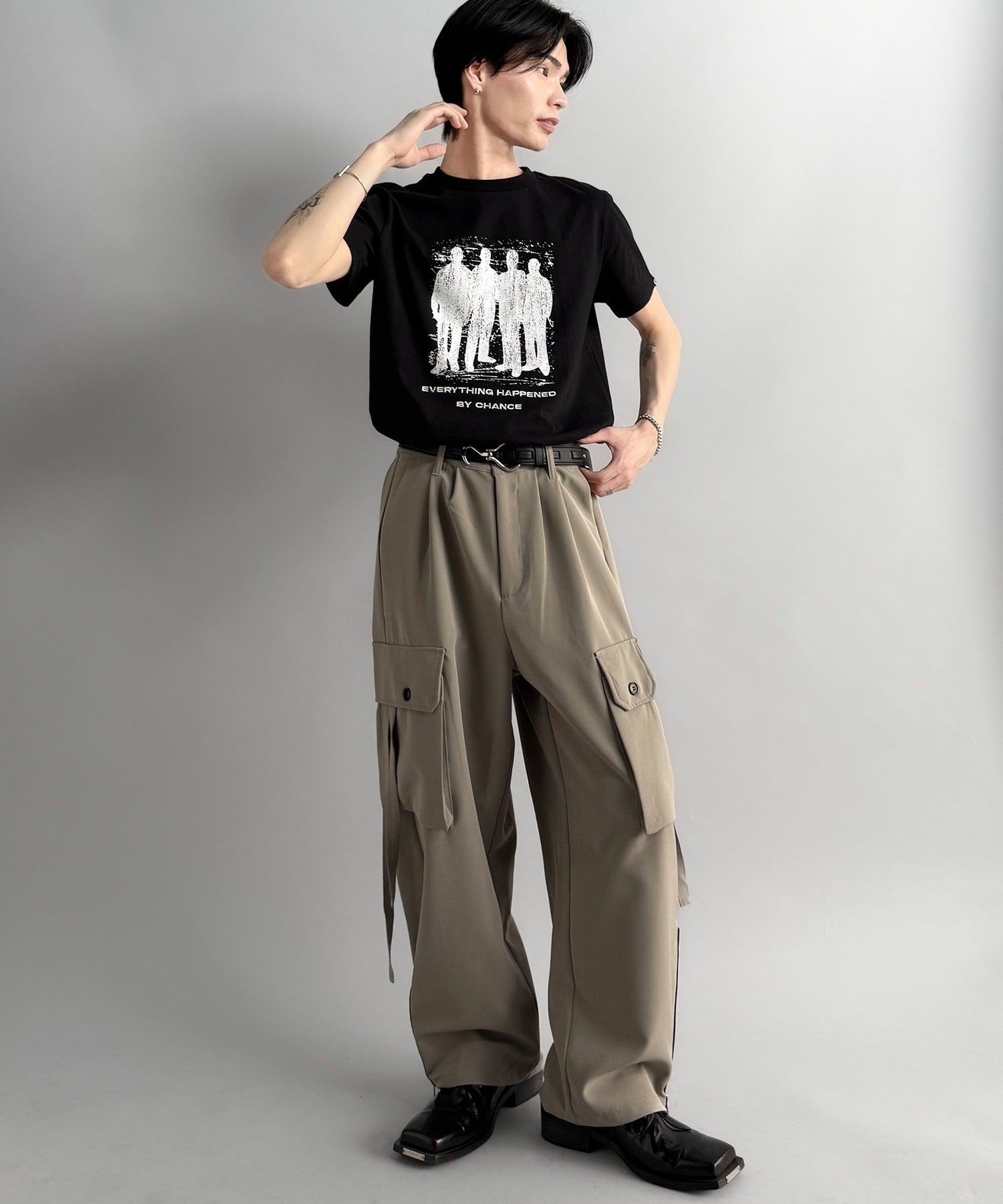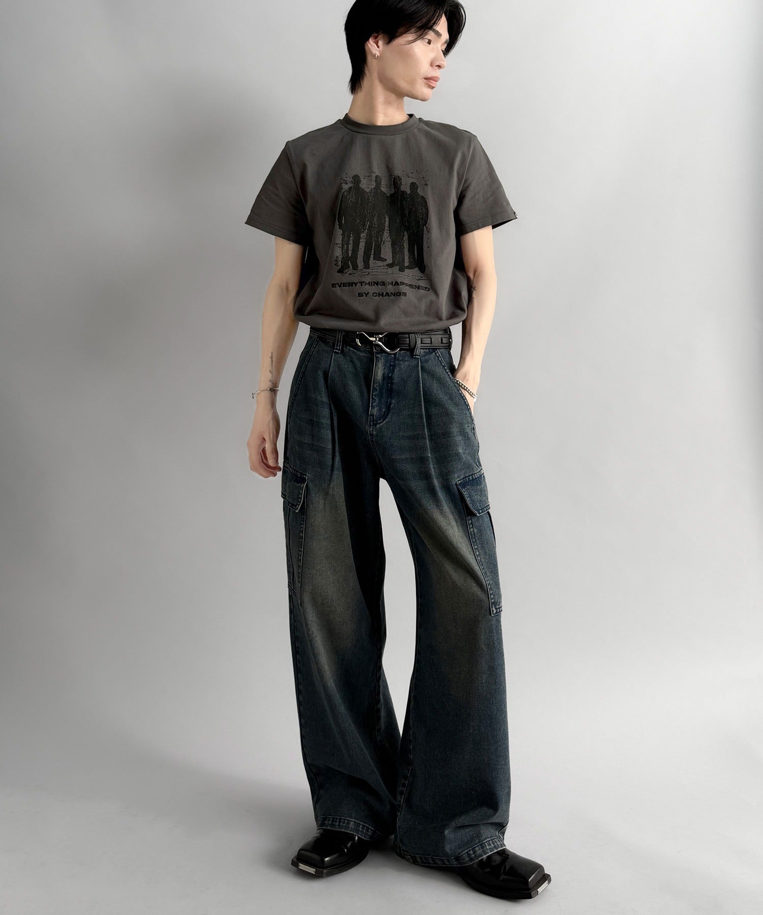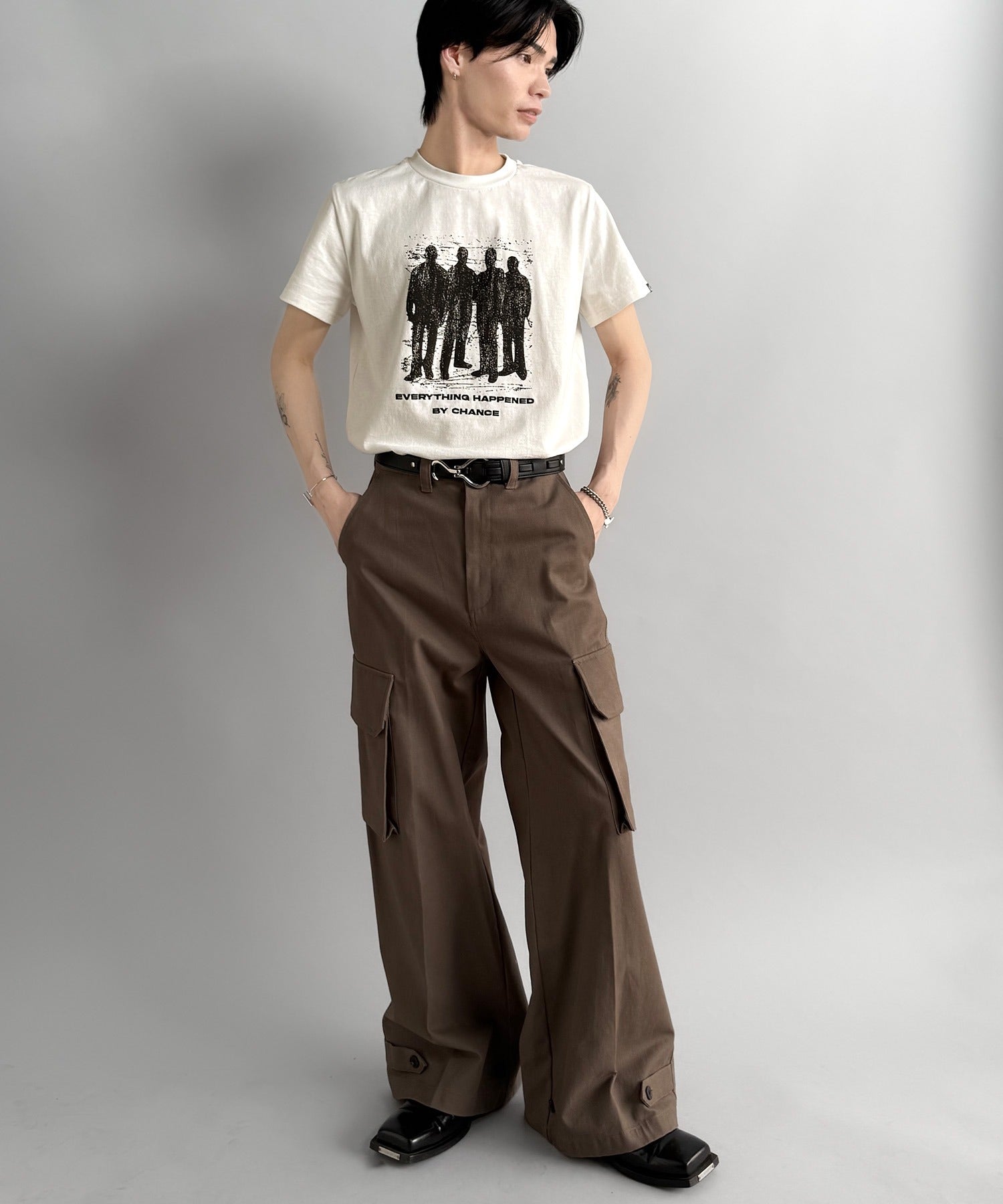 デニム、スラックス、カーゴパンツなど多様なボトムスと好相性。
