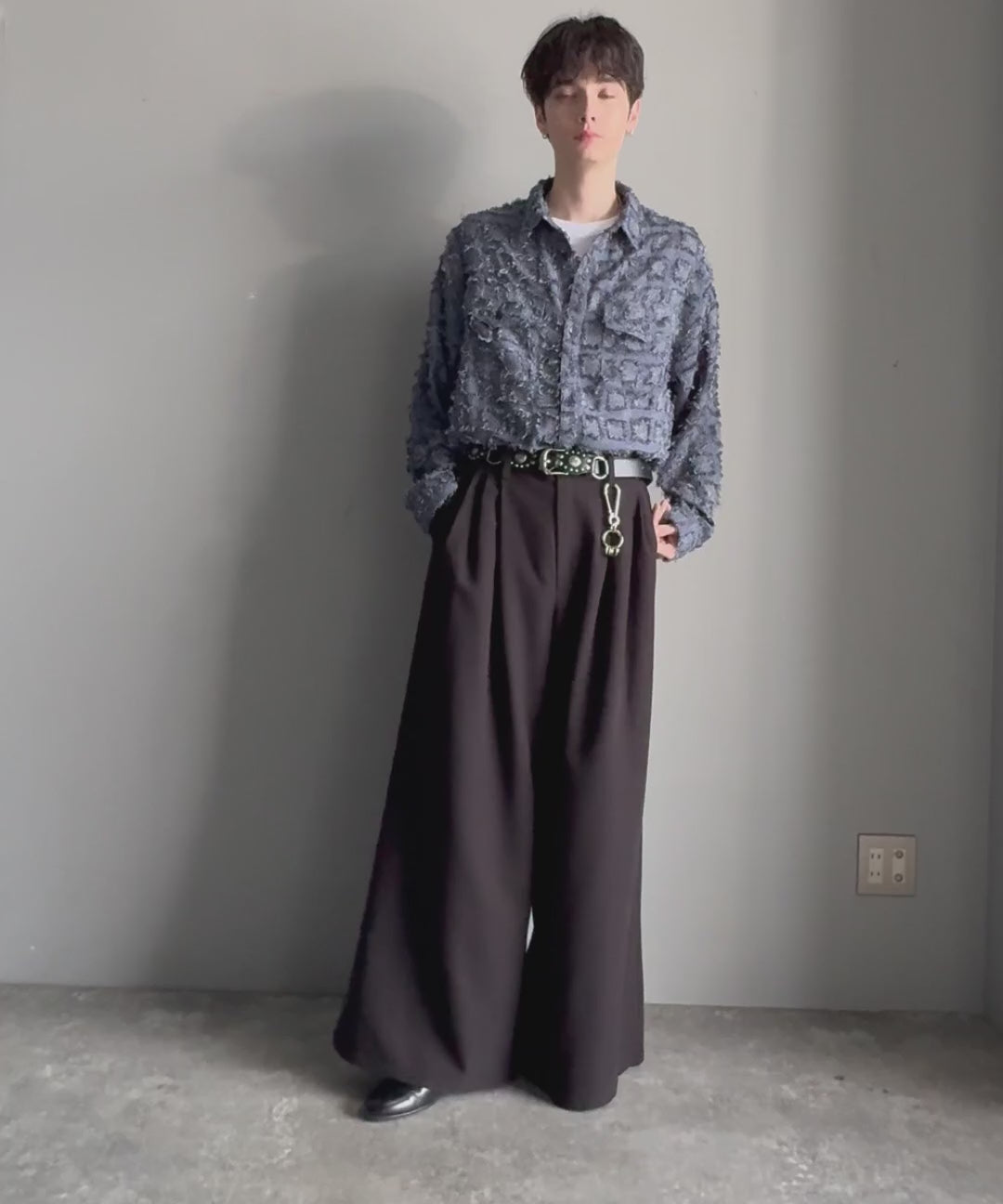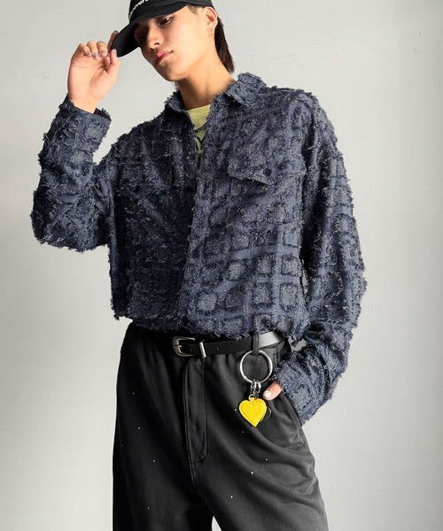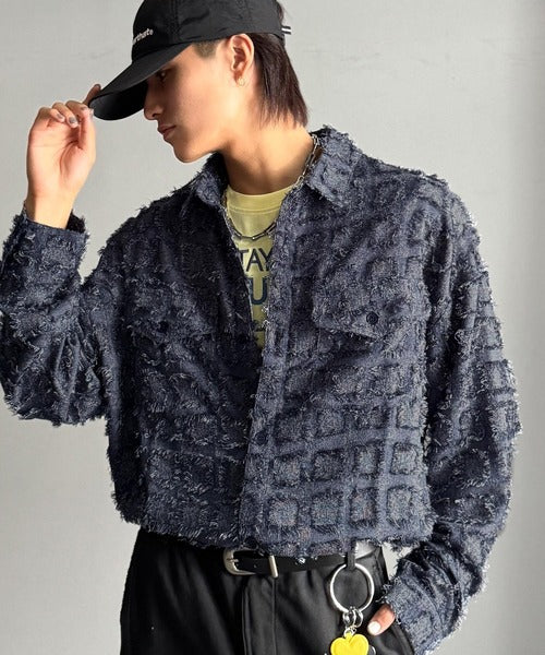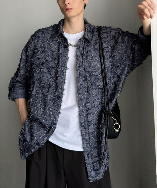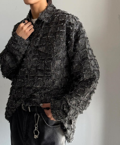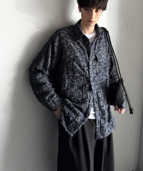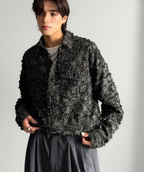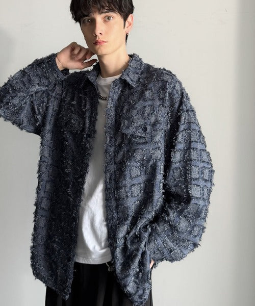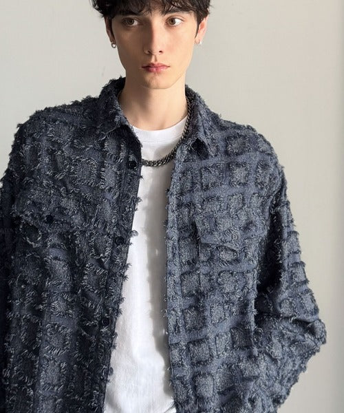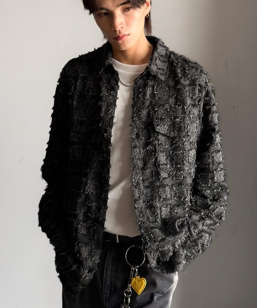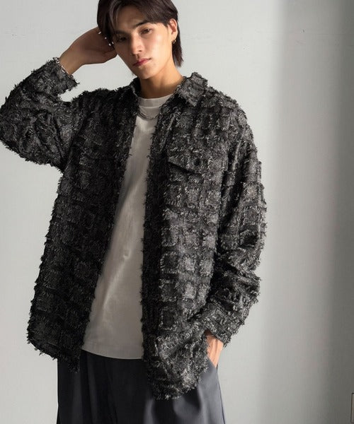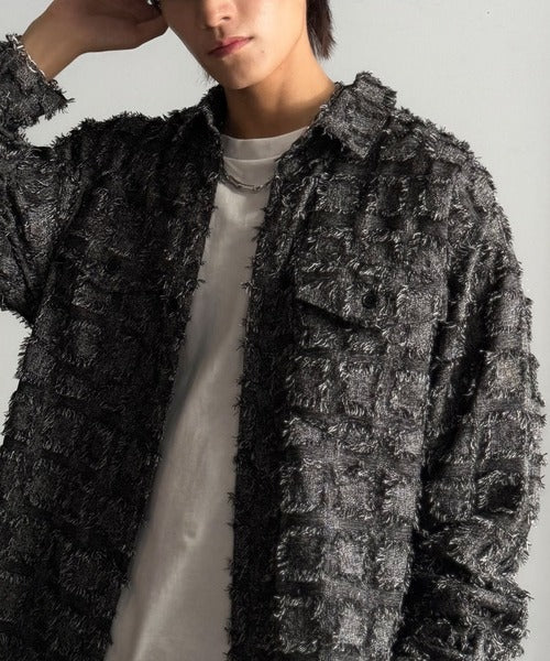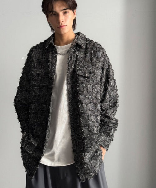 フリンジ素材で魅せる、シンプルなシャツジャケット。