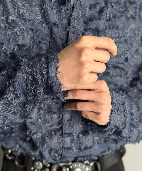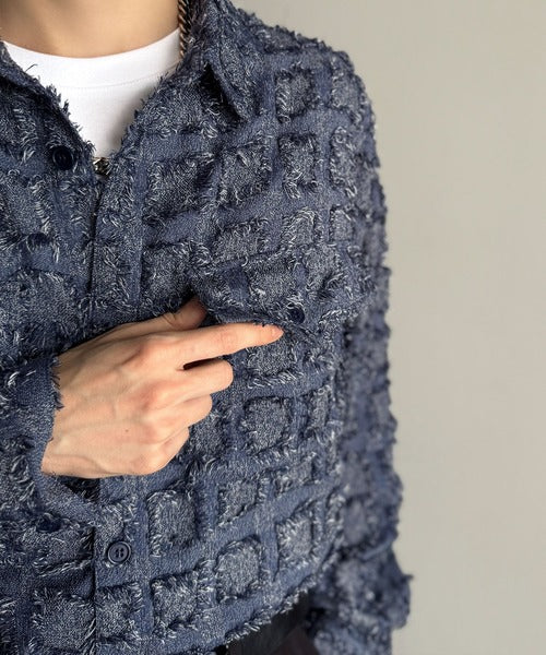 「Fringed block check outer shirt/フリンジ使いブロックチェックアウターシャツ」