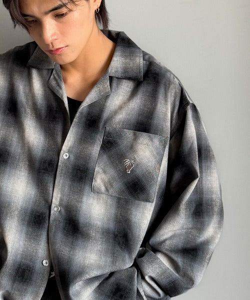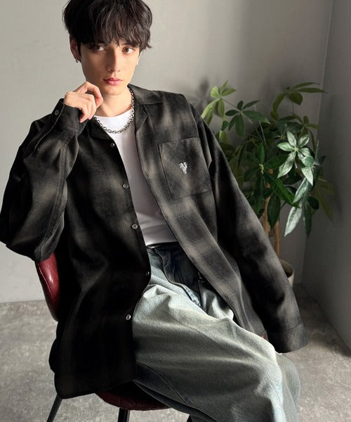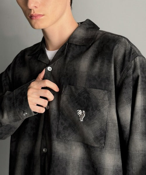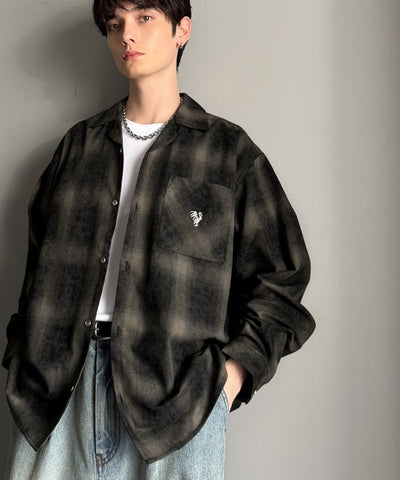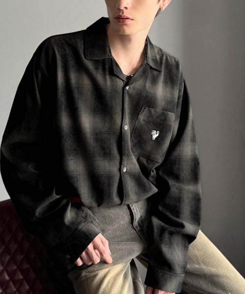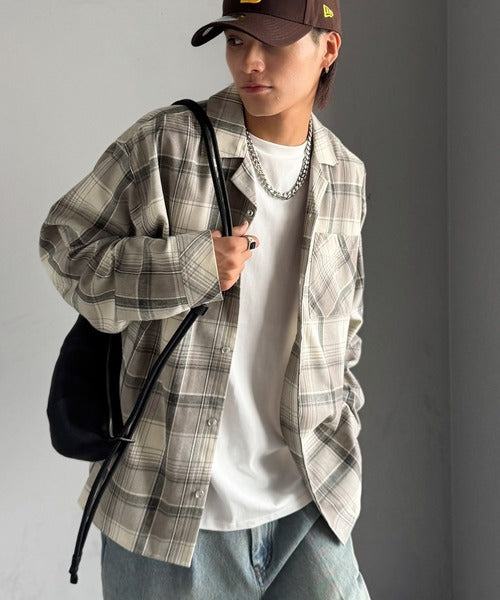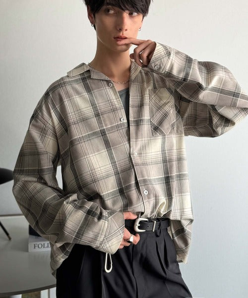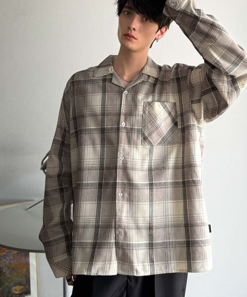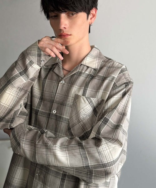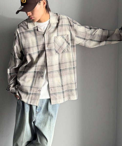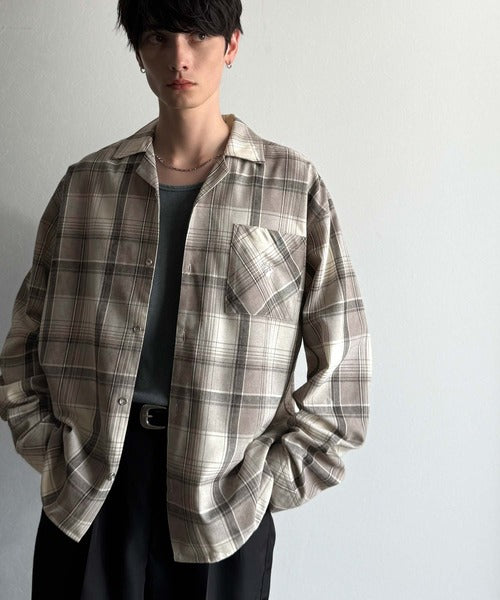 【Classical Origin】自然体のカッコよさ。ヴィンテージ風チェック柄オープンカラーシャツ(長袖)/Vintage-style check pattern open collar shirt co1010024