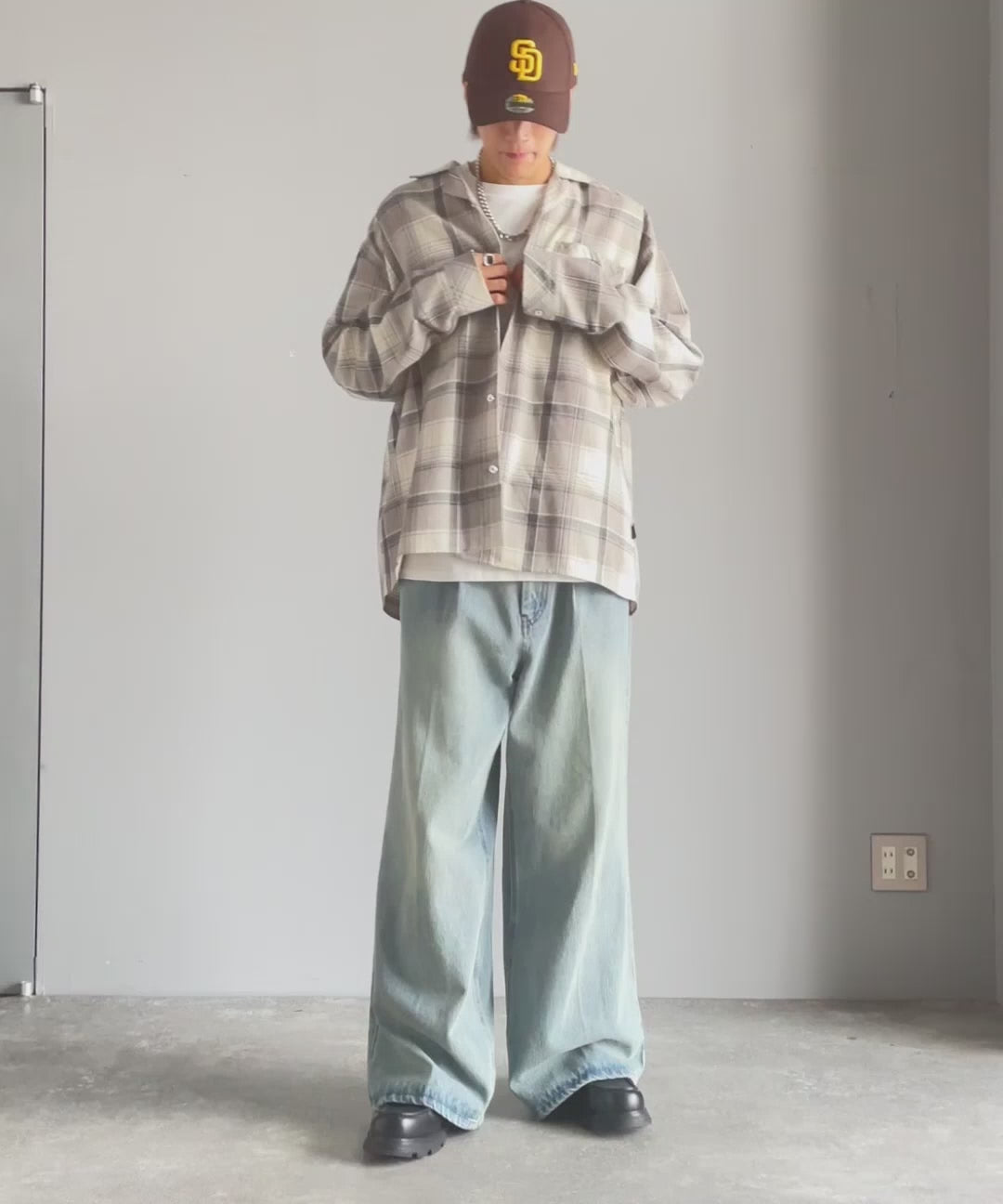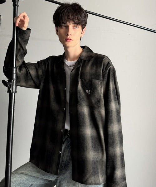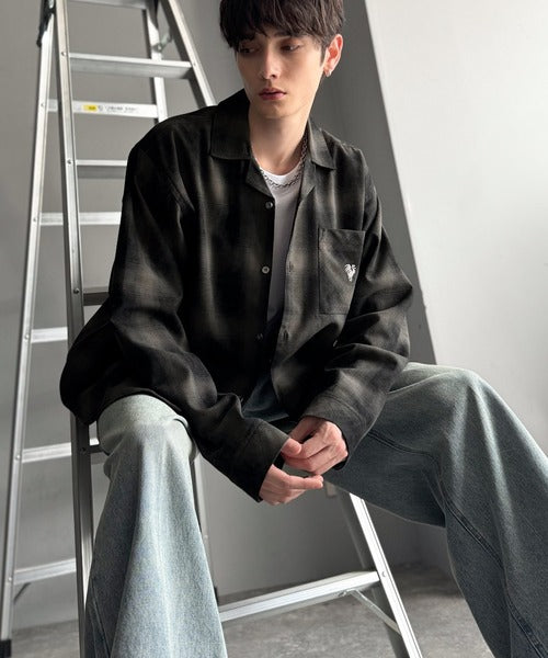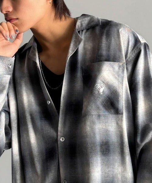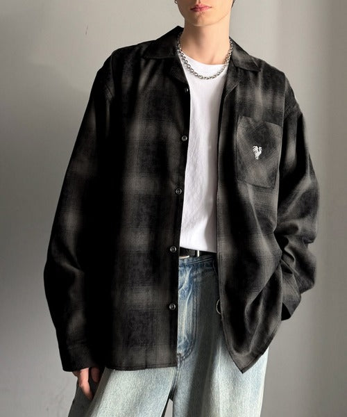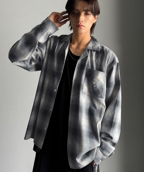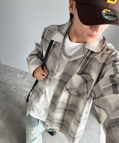 【Classical Origin】自然体のカッコよさ。ヴィンテージ風チェック柄オープンカラーシャツ(長袖)/Vintage-style check pattern open collar shirt co1010024