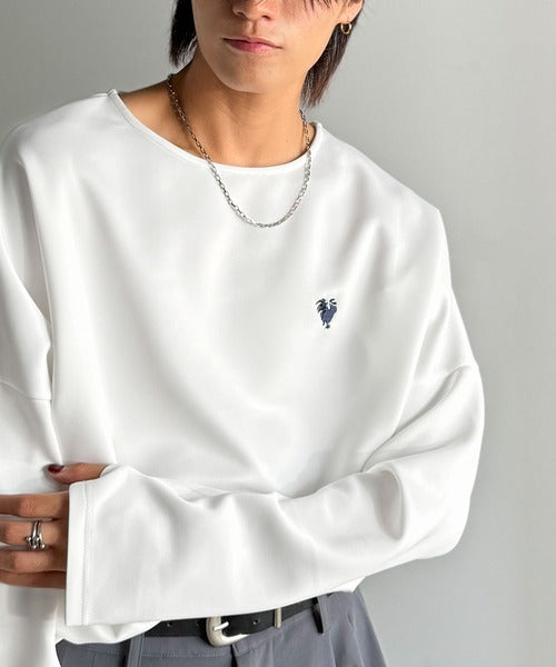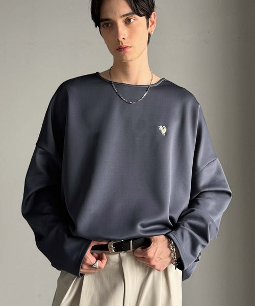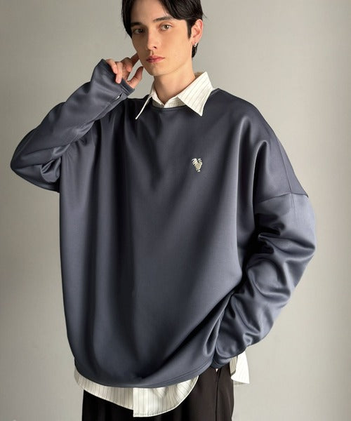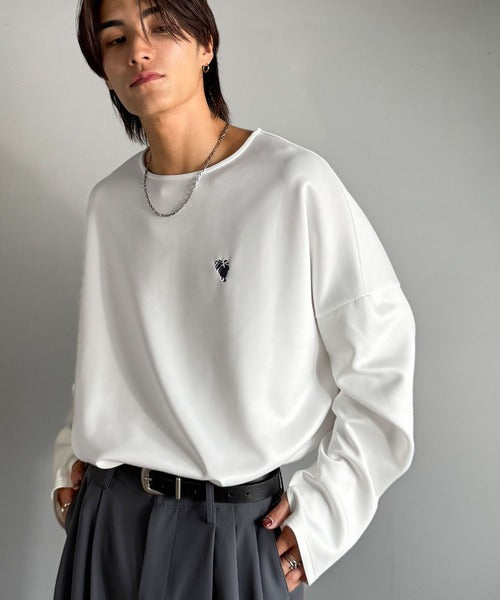 ドロップショルダーで肩回りに程よい落ち感を出し、ゆとりのあるシルエットが特徴。