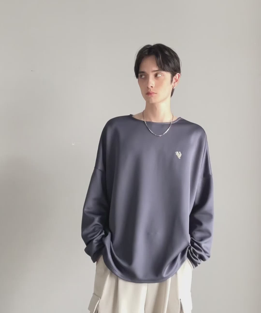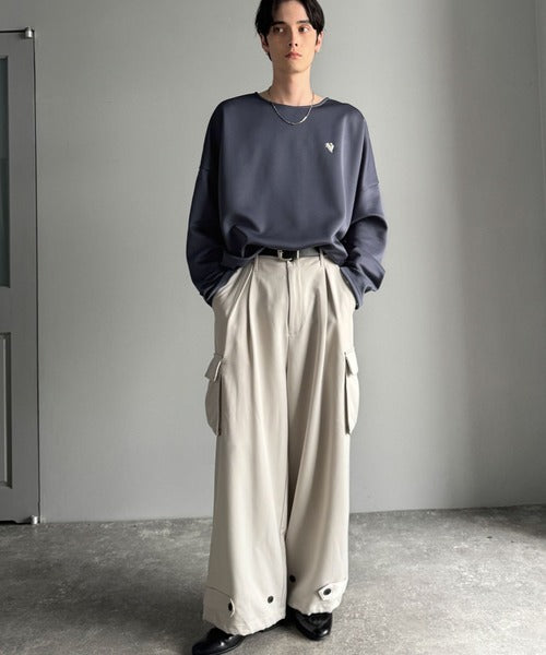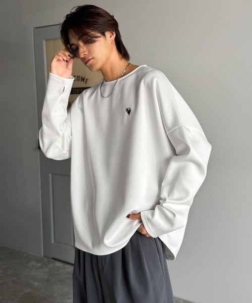 コクーンシルエットとドロップショルダーを組み合わせたドルマンTシャツ。