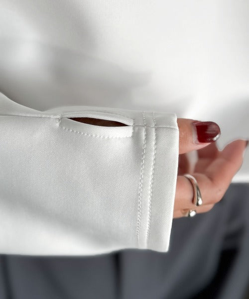 袖口にはサムホールを配置し、デザイン性に加えて機能性もプラス。