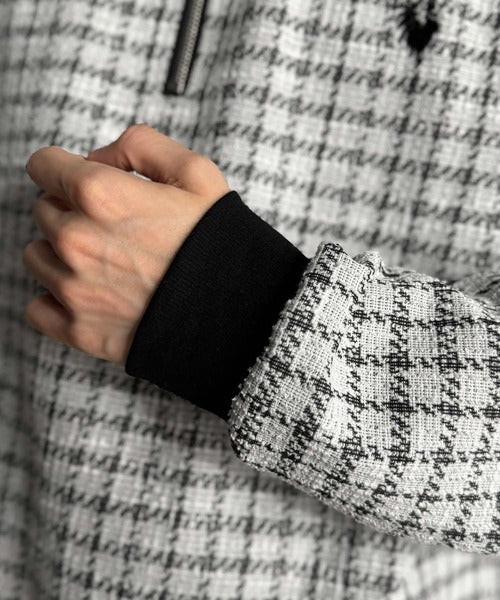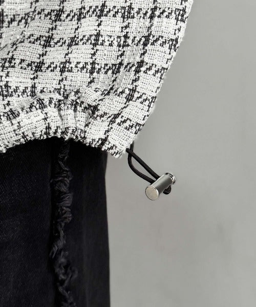 「Tweed Fabric Drawcord Half-Zip Pullover/裾ドロスト付きツイード素材ハーフジッププルオーバー」