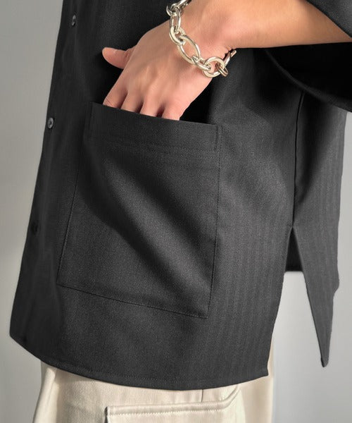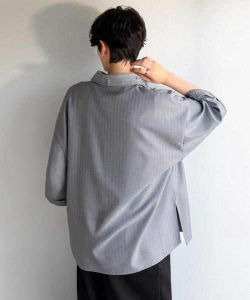 ヘリンボーンストライプの素材と程良い厚みで、羽織としても使いやすく、