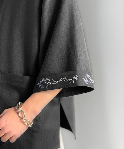 衿元と袖口に施した刺繍がポイントのアイテム。