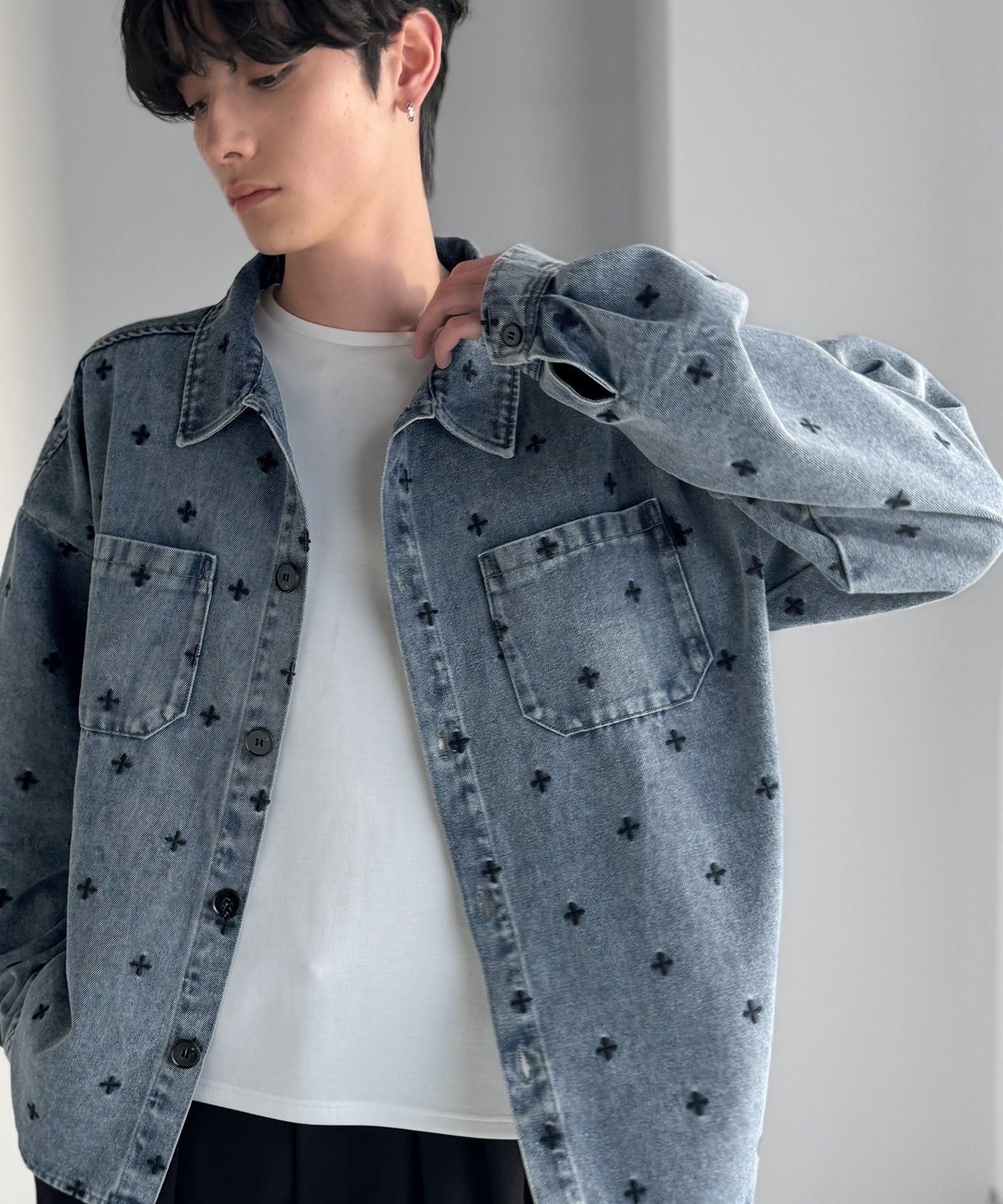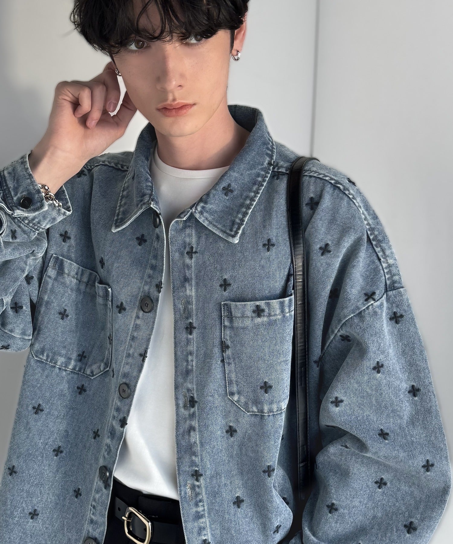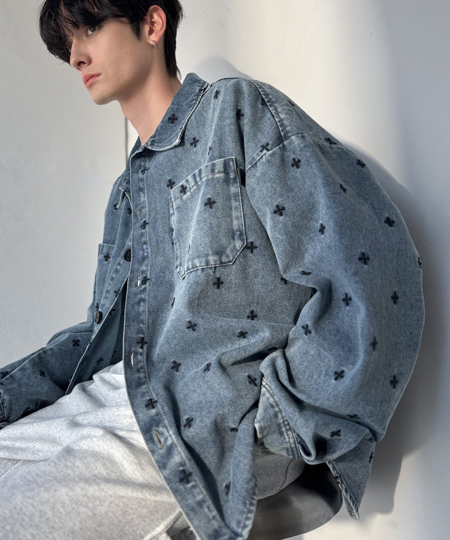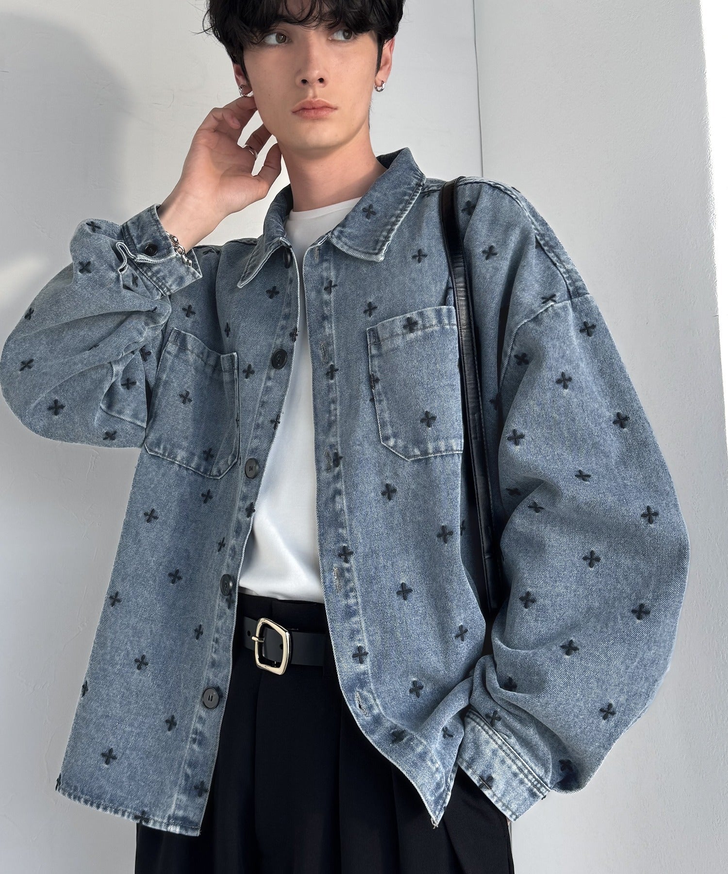 「All-Over Embroidered Denim Shirt Jacket/総柄刺繍デニムシャツジャケット」