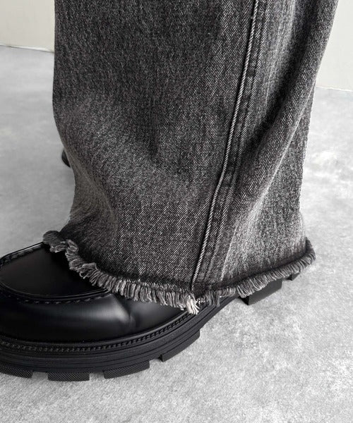 「ずるっとこなれ感。」ヴィンテージ加工ワイド3Dカーブデニムパンツ/Vintage Washed 3D Curve Wide-Leg Denim co1150003