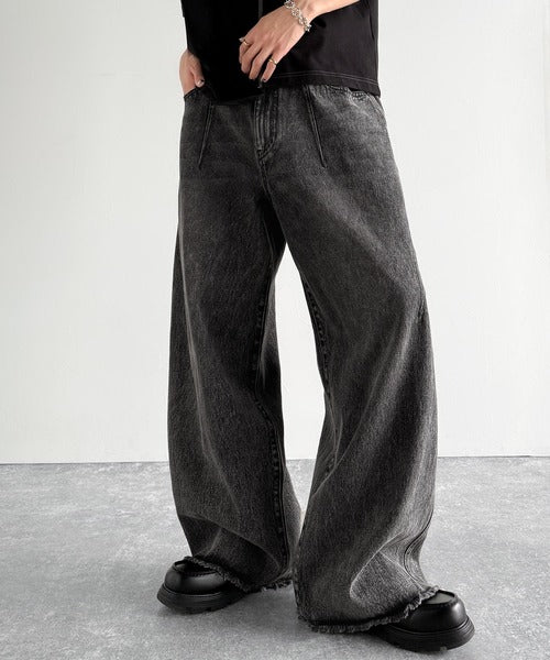 「Vintage Washed 3D Curve Wide-Leg Denim/