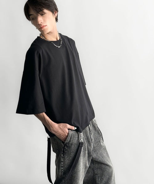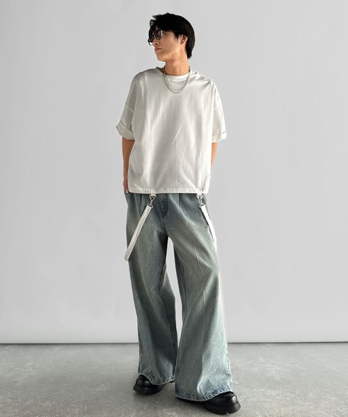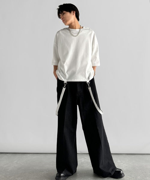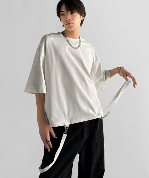 「垂らすだけで差別化。」脱着式ベルトデザインショート丈Tシャツ/Belt Design Transformable Cropped T-Shirt co1150015