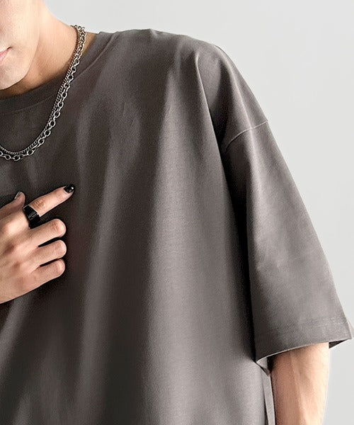 綿100%の26/2天竺素材に生地洗い加工を施し、柔らかな風合いを実現。