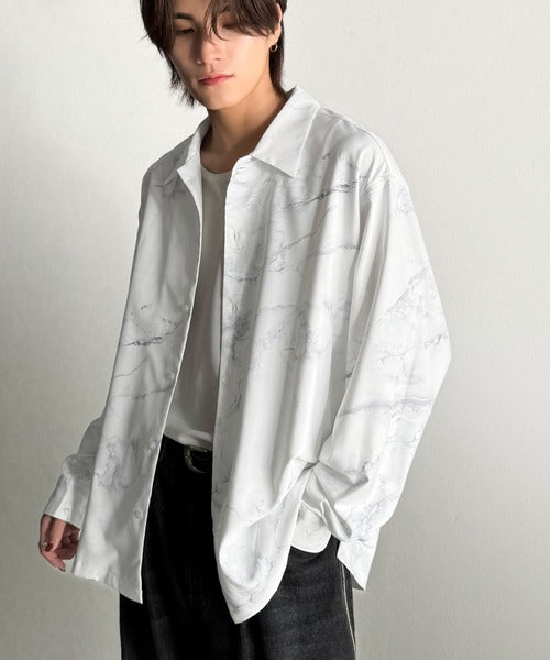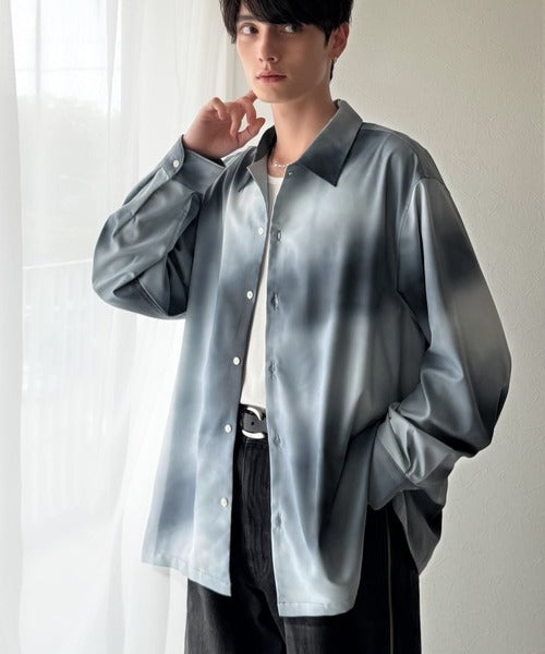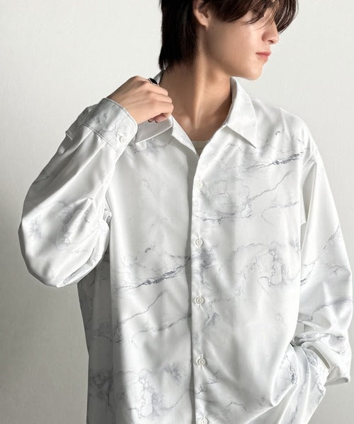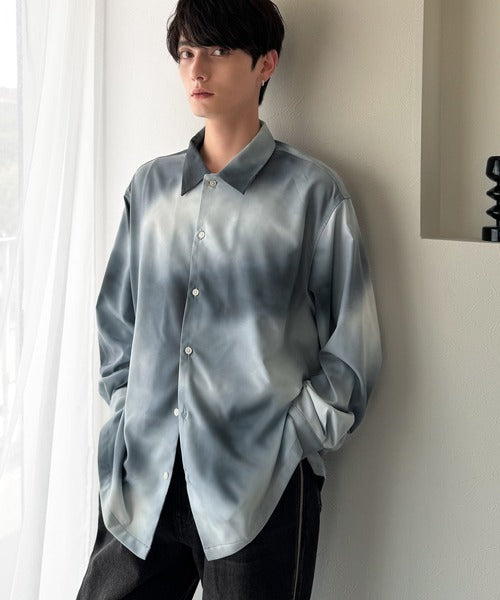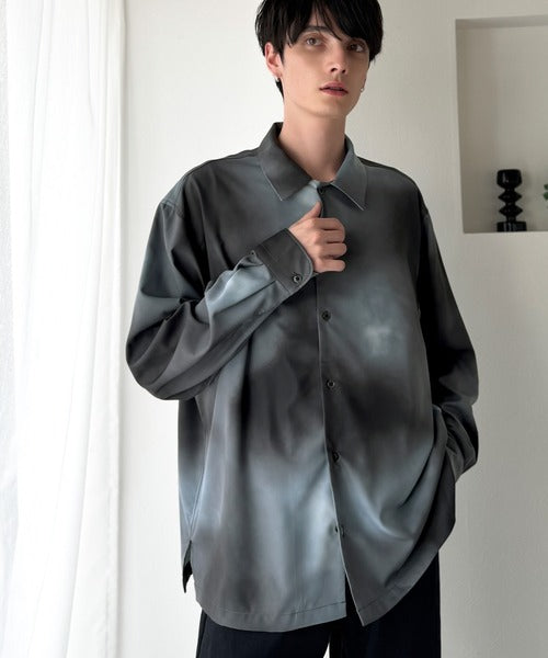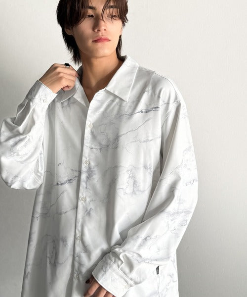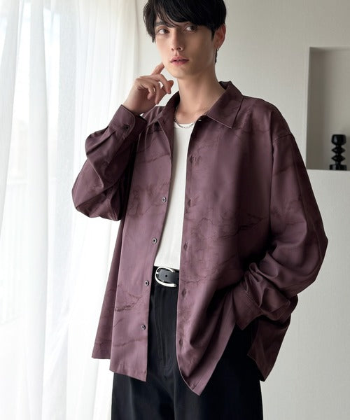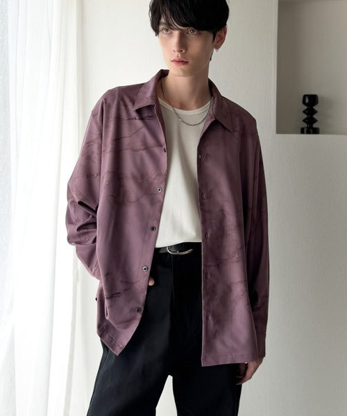 【Classical Origin】「都会的スタイル」。総柄ドレープキャンプカラーシャツ(長袖)/Relaxed Drape All-Over Pattern Camp Collar Shirt co1150039