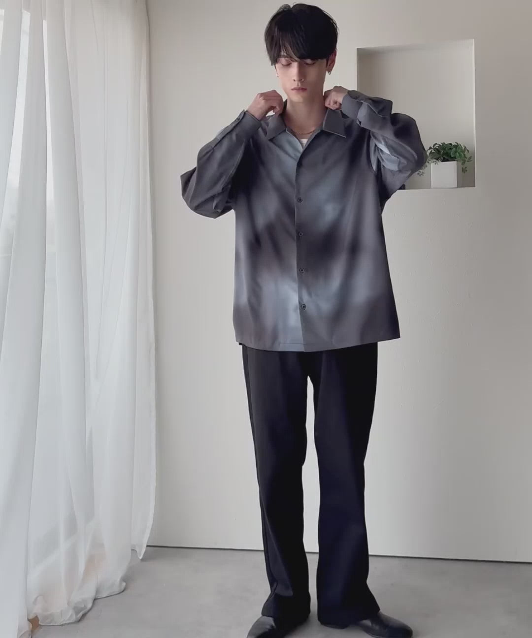 存在感あるアブストラクト柄が都会的な印象を放ち、デニムやスラックスなど多様なボトムスと好相性。