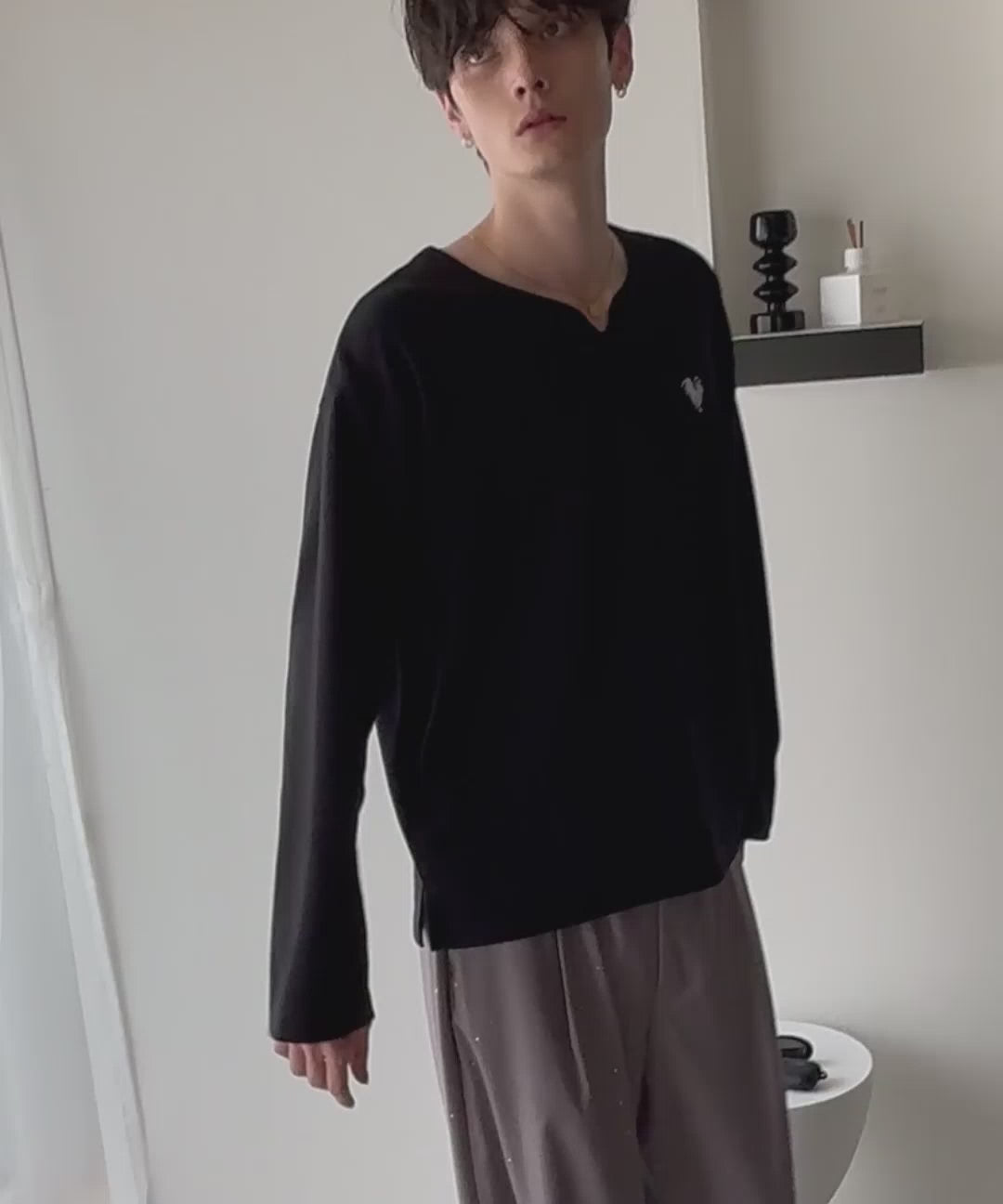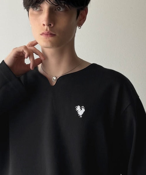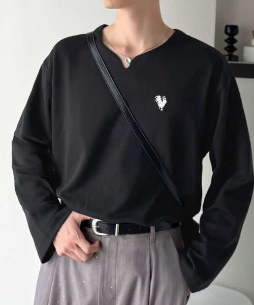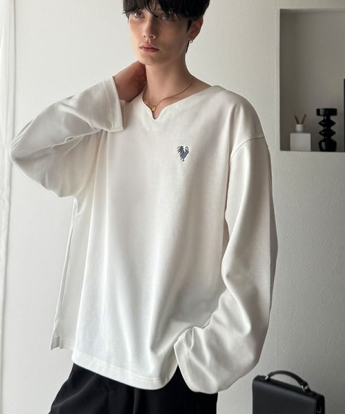【Classical Origin】「着心地と、上質感と。」Soft Ponte V-Neck T-Shirt/ポンチ素材Vネック胸刺繍Tシャツ(長袖) co1150049