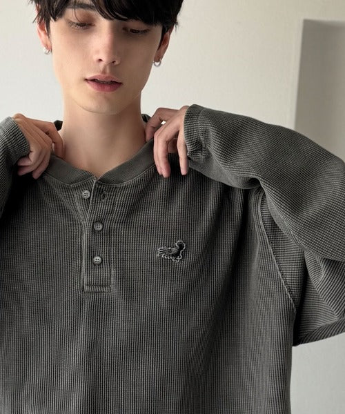 「Pigment-Dyed Thermal Henley T-Shirt/ピグメント加工サーマルヘンリーネックTシャツ」