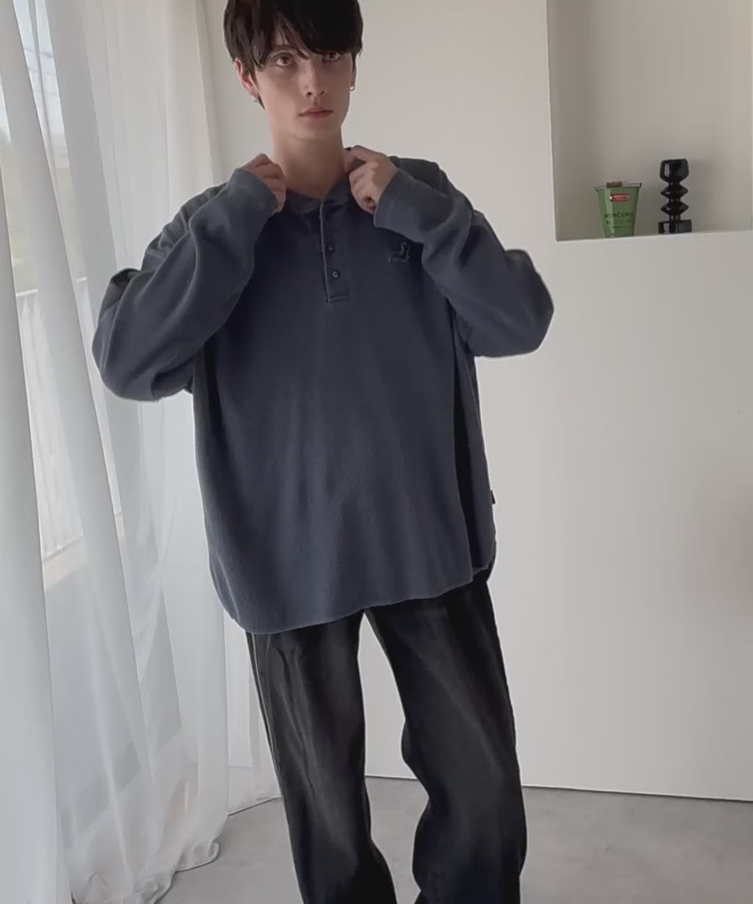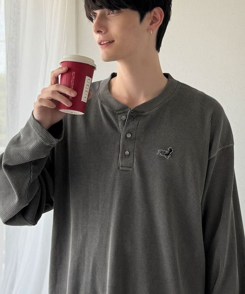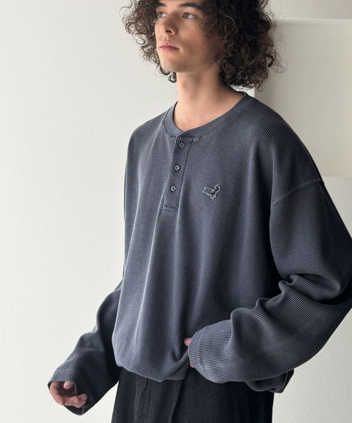 「Pigment-Dyed Thermal Henley T-Shirt/
