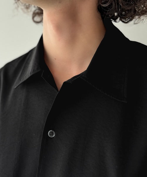 開襟でもレギュラーでも着られる2WAYデザインのキャンプカラーシャツ。