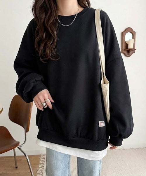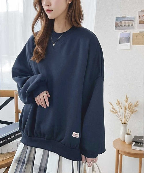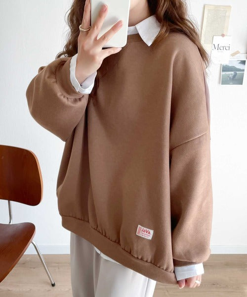 《JaVaジャバ コラボ》ボリューム袖 裏起毛無地ビッグシルエットトレーナー(長袖) elf077