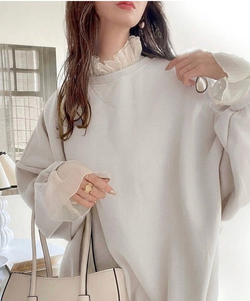 ラフでお洒落な「ボリューム袖×柔らかスウェット」のビッグシルエットトップス。