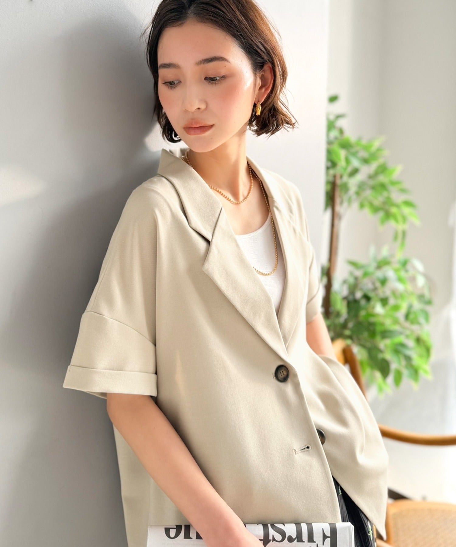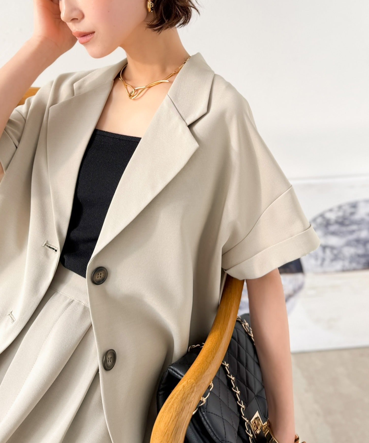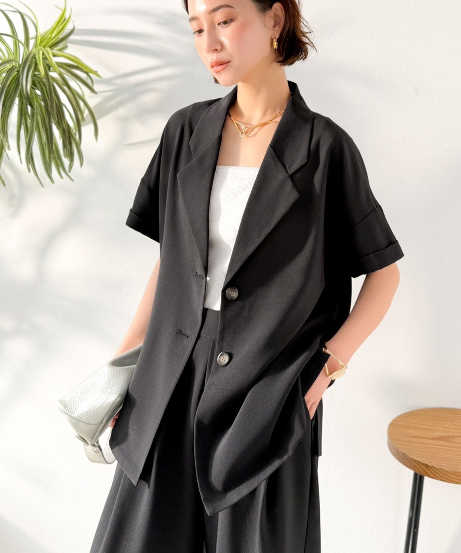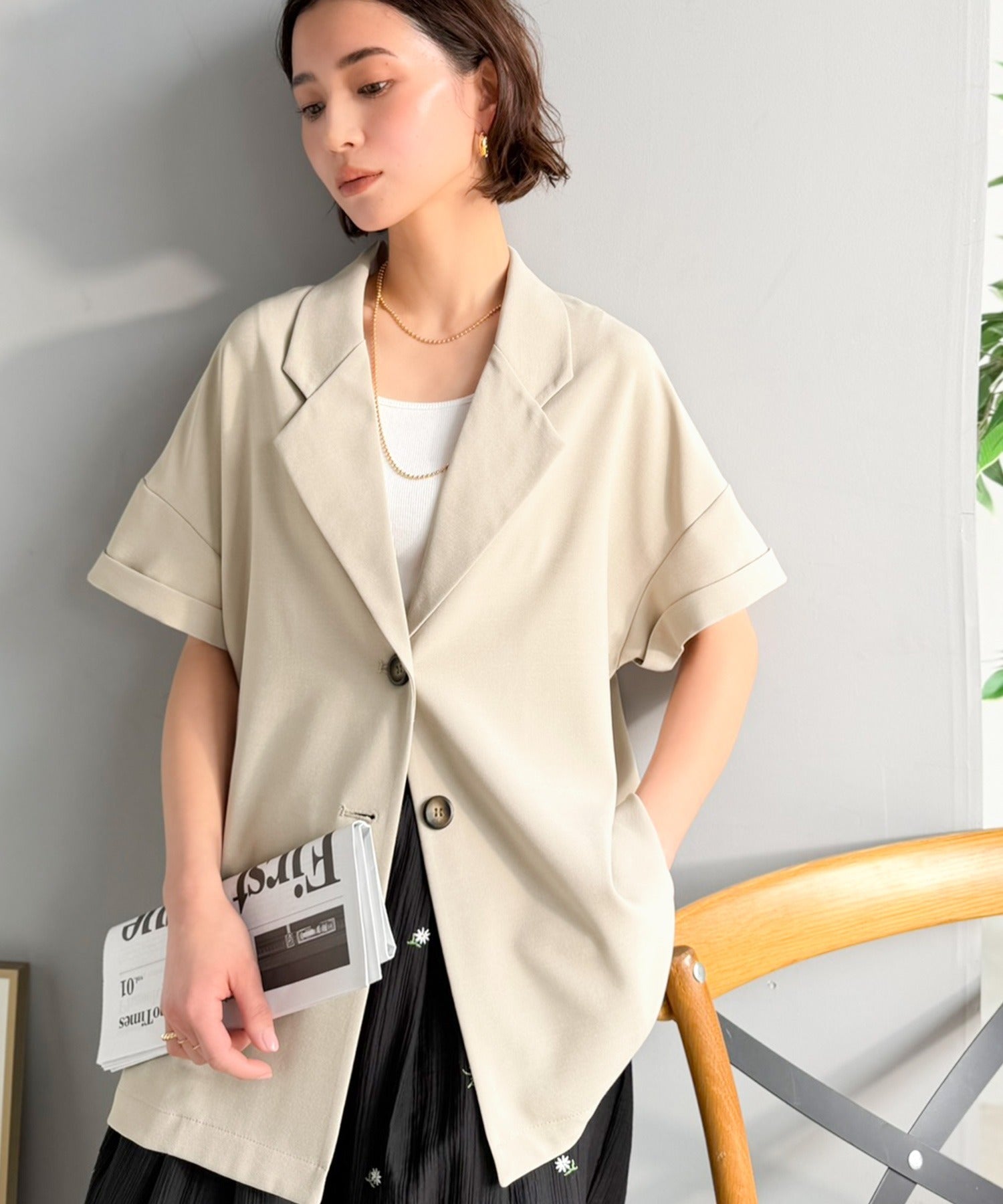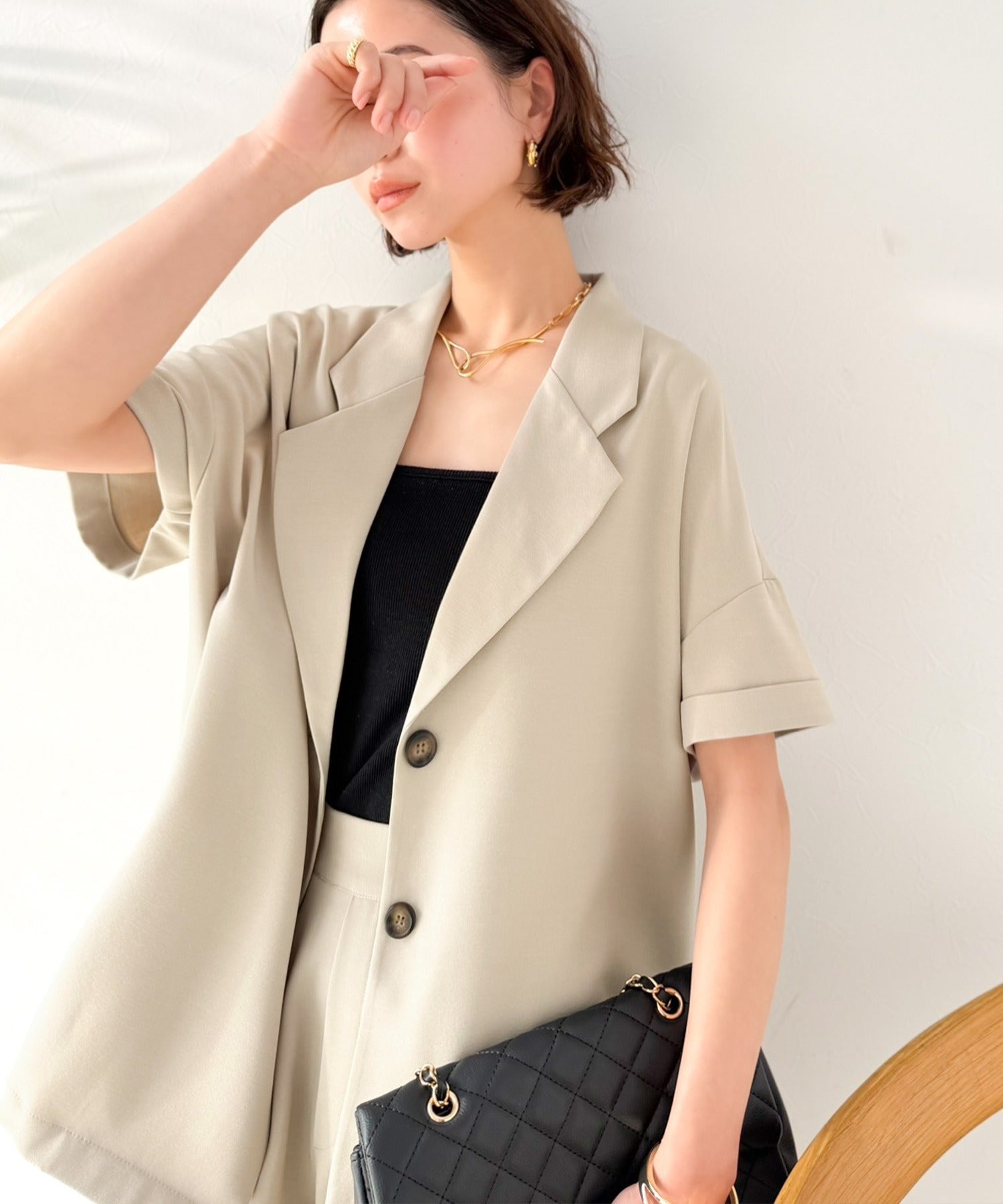 【Classical Evon】【イージーケア素材】軽やかに羽織れる上品さが魅力。イージーケア半袖ジャケット(セットアップ可能) ev1240125