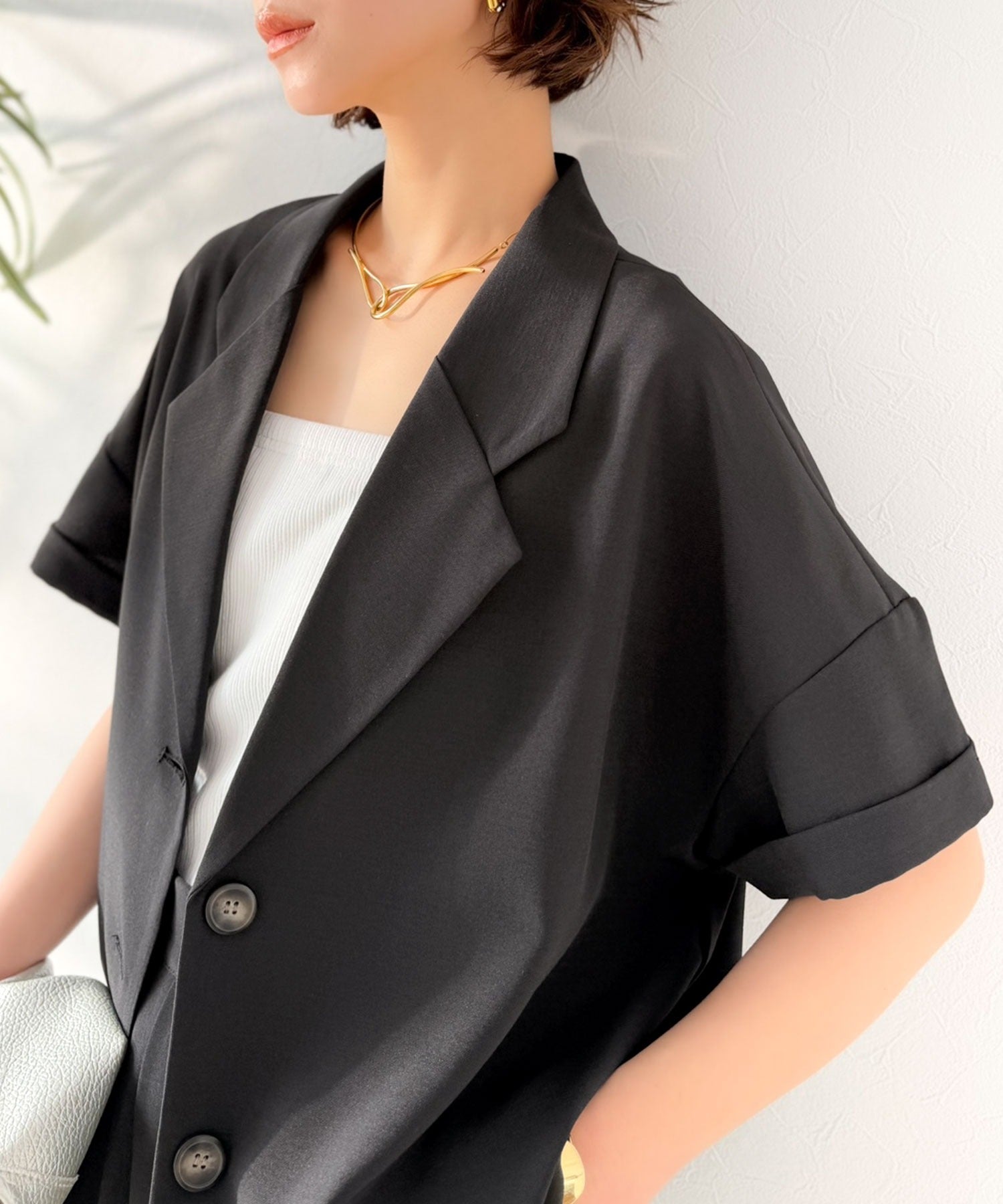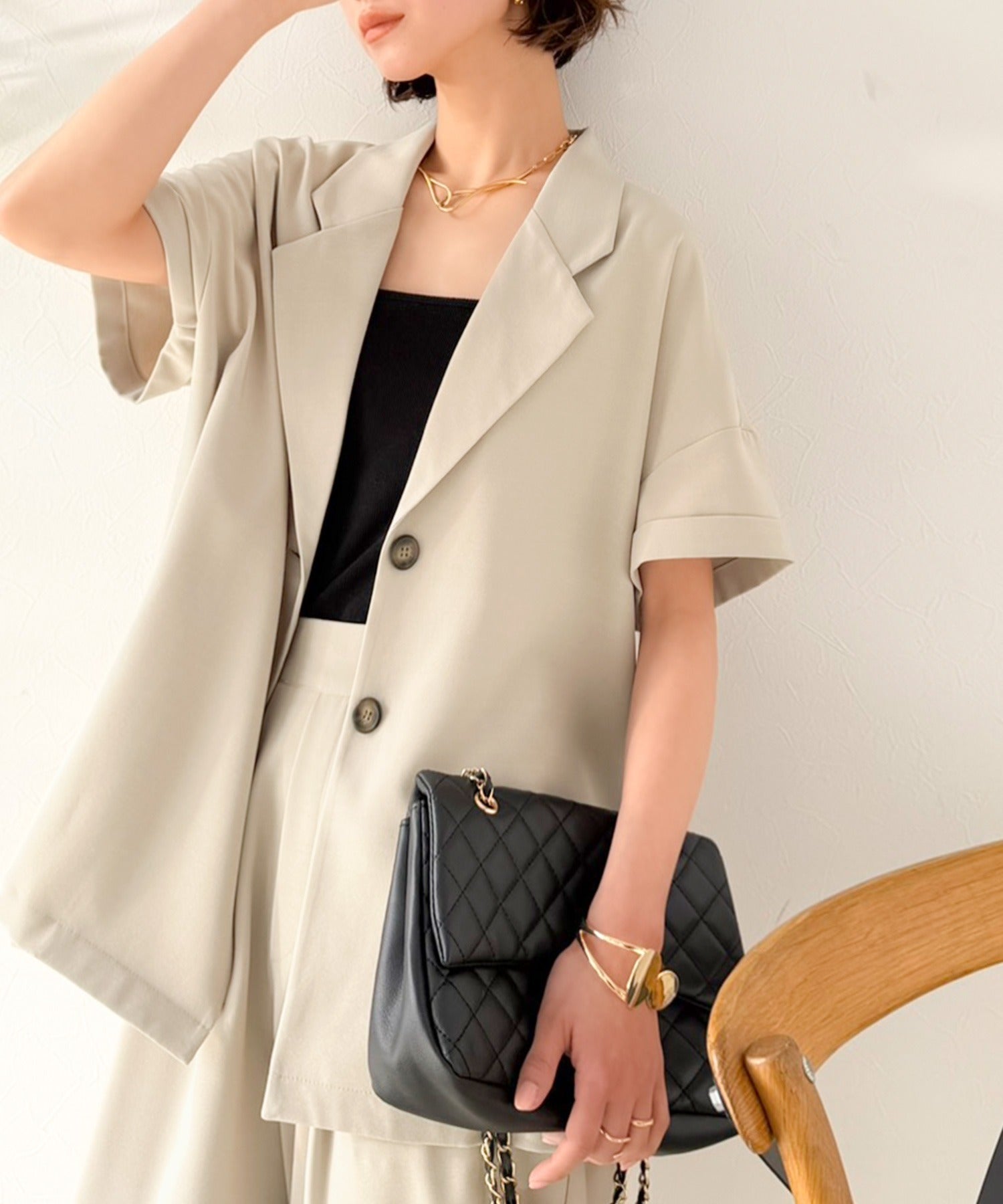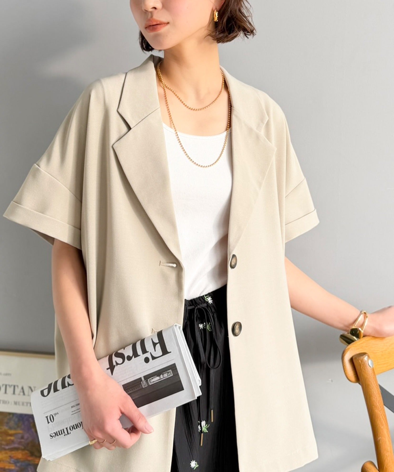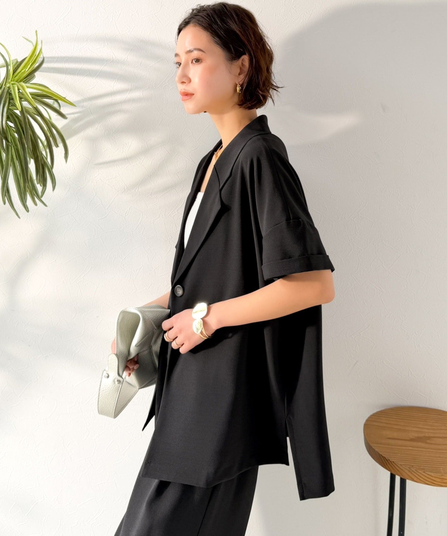 【Classical Evon】【イージーケア素材】軽やかに羽織れる上品さが魅力。イージーケア半袖ジャケット(セットアップ可能) ev1240125