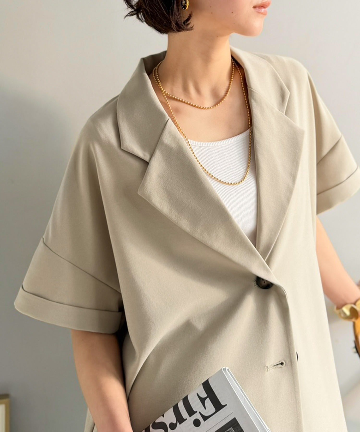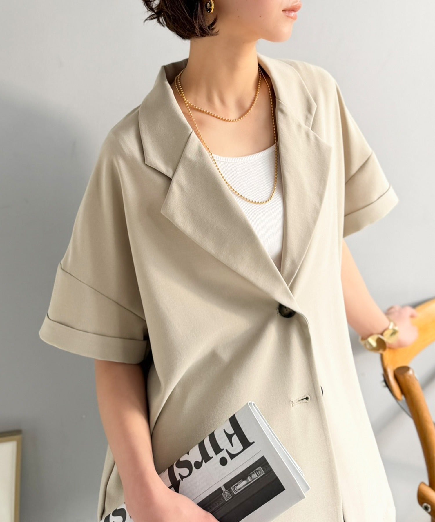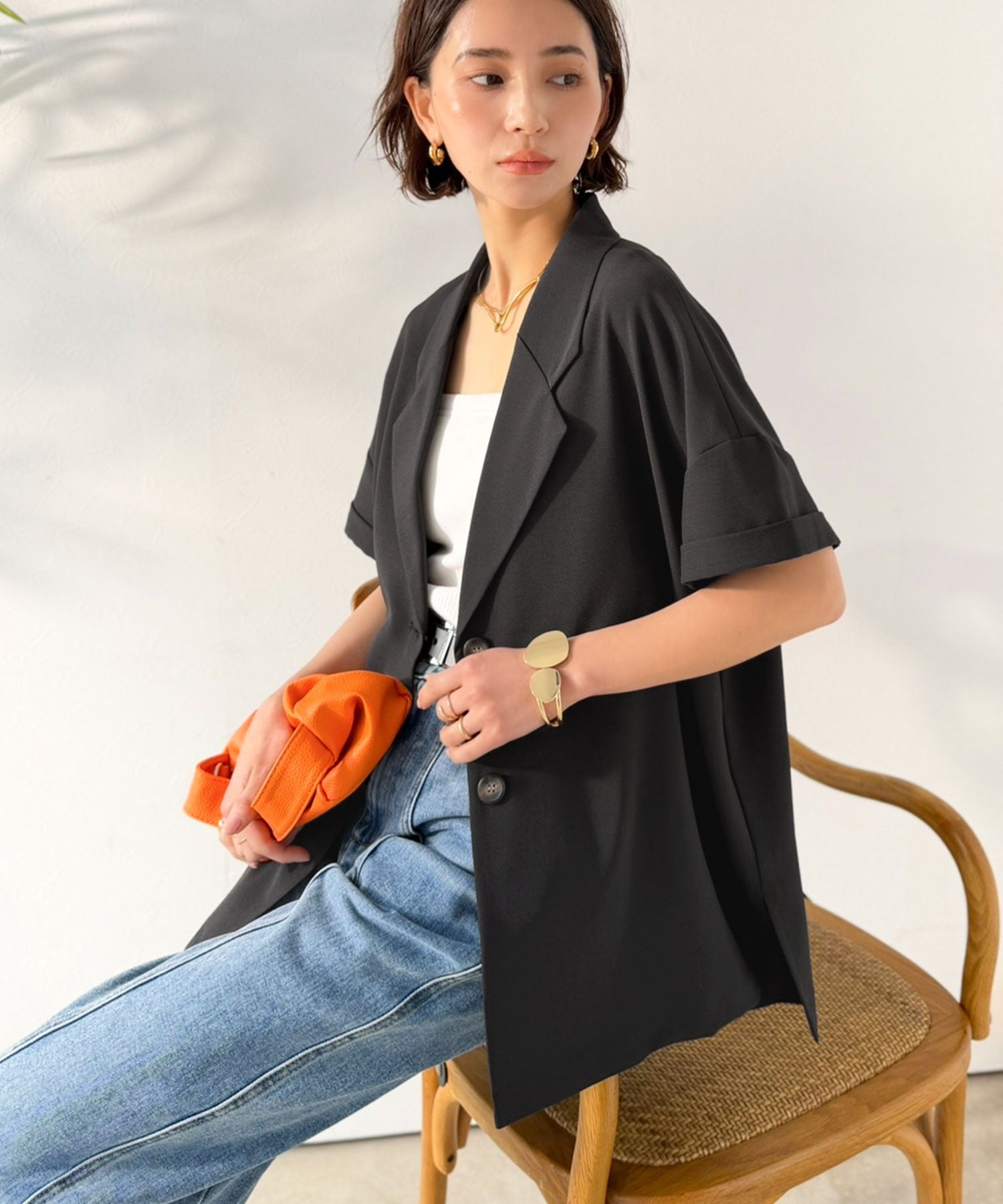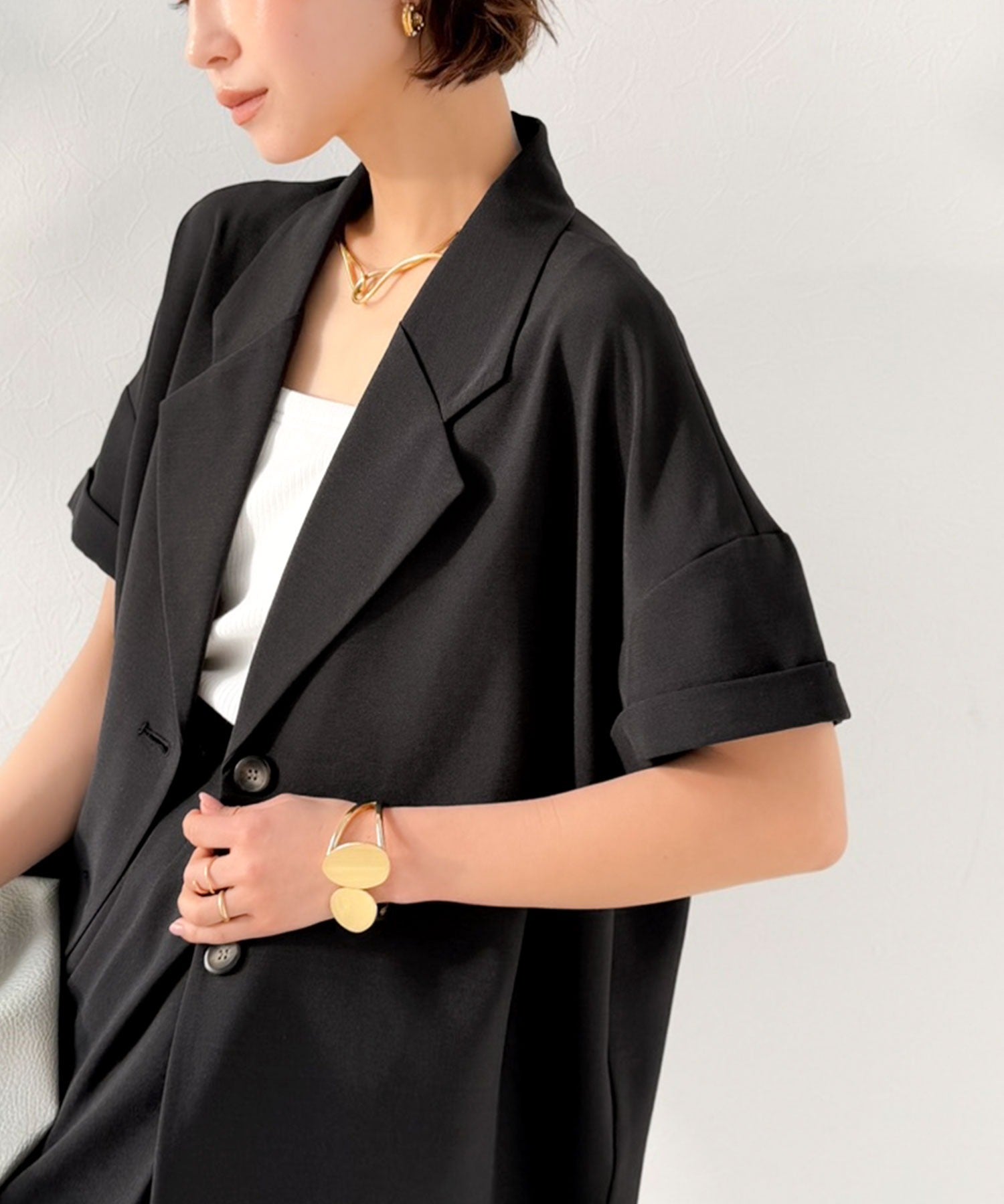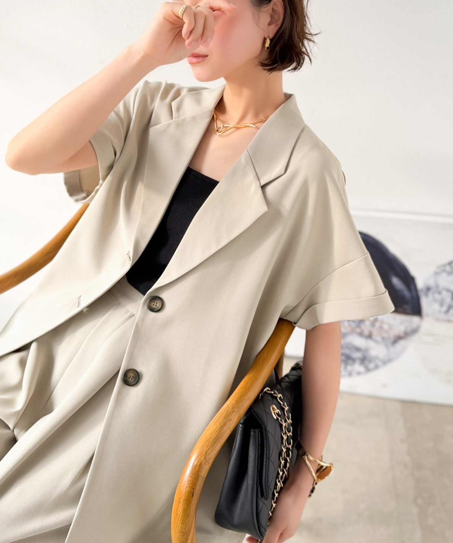 【Classical Evon】【イージーケア素材】軽やかに羽織れる上品さが魅力。イージーケア半袖ジャケット(セットアップ可能) ev1240125