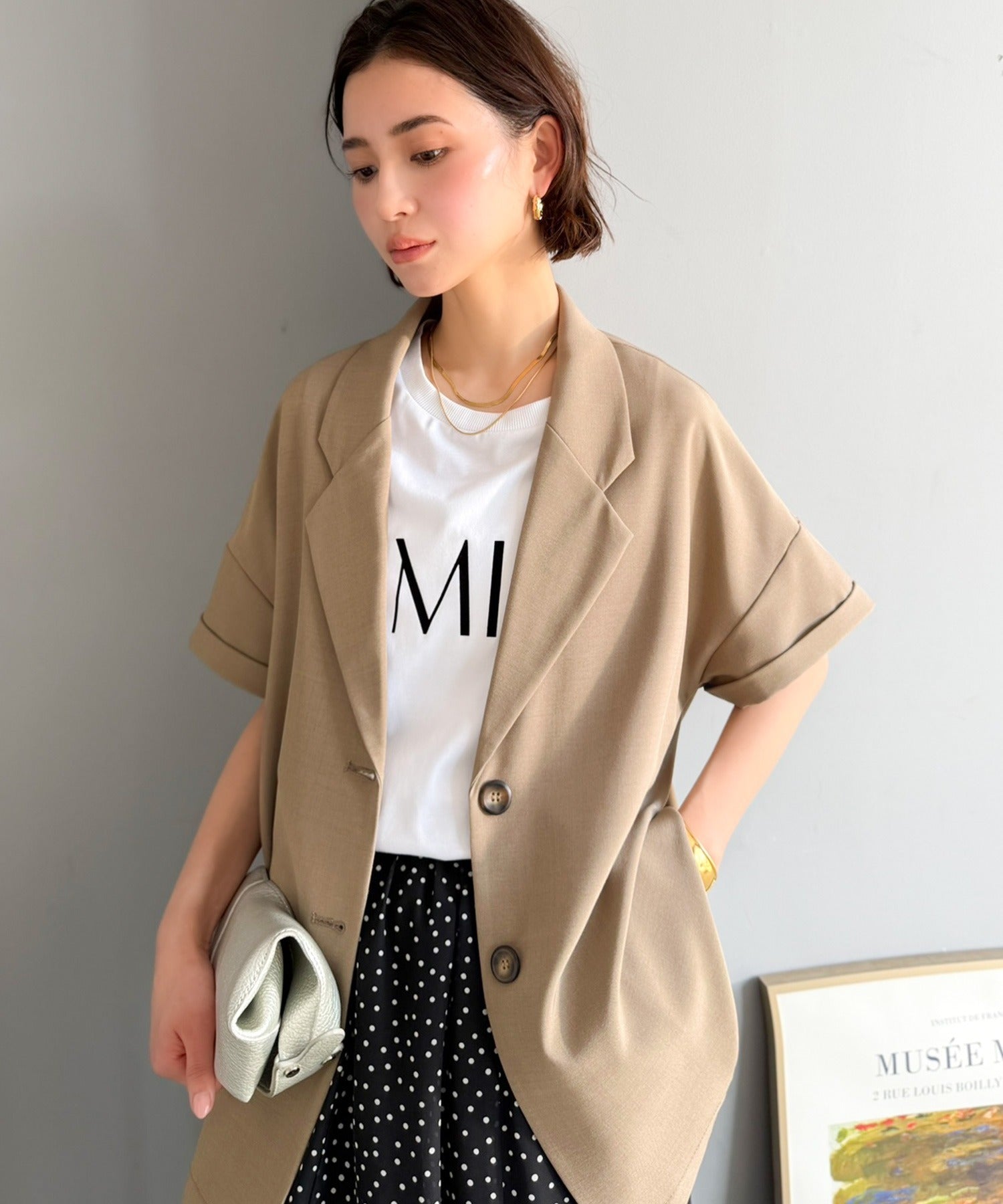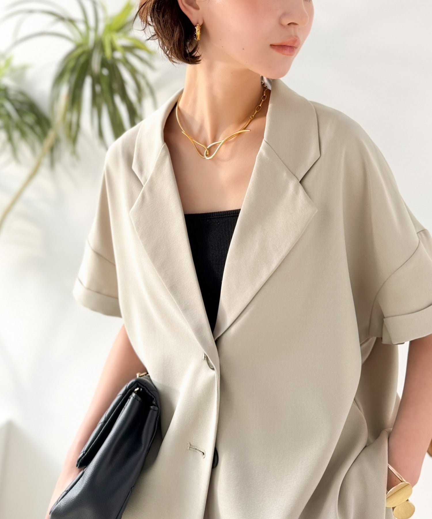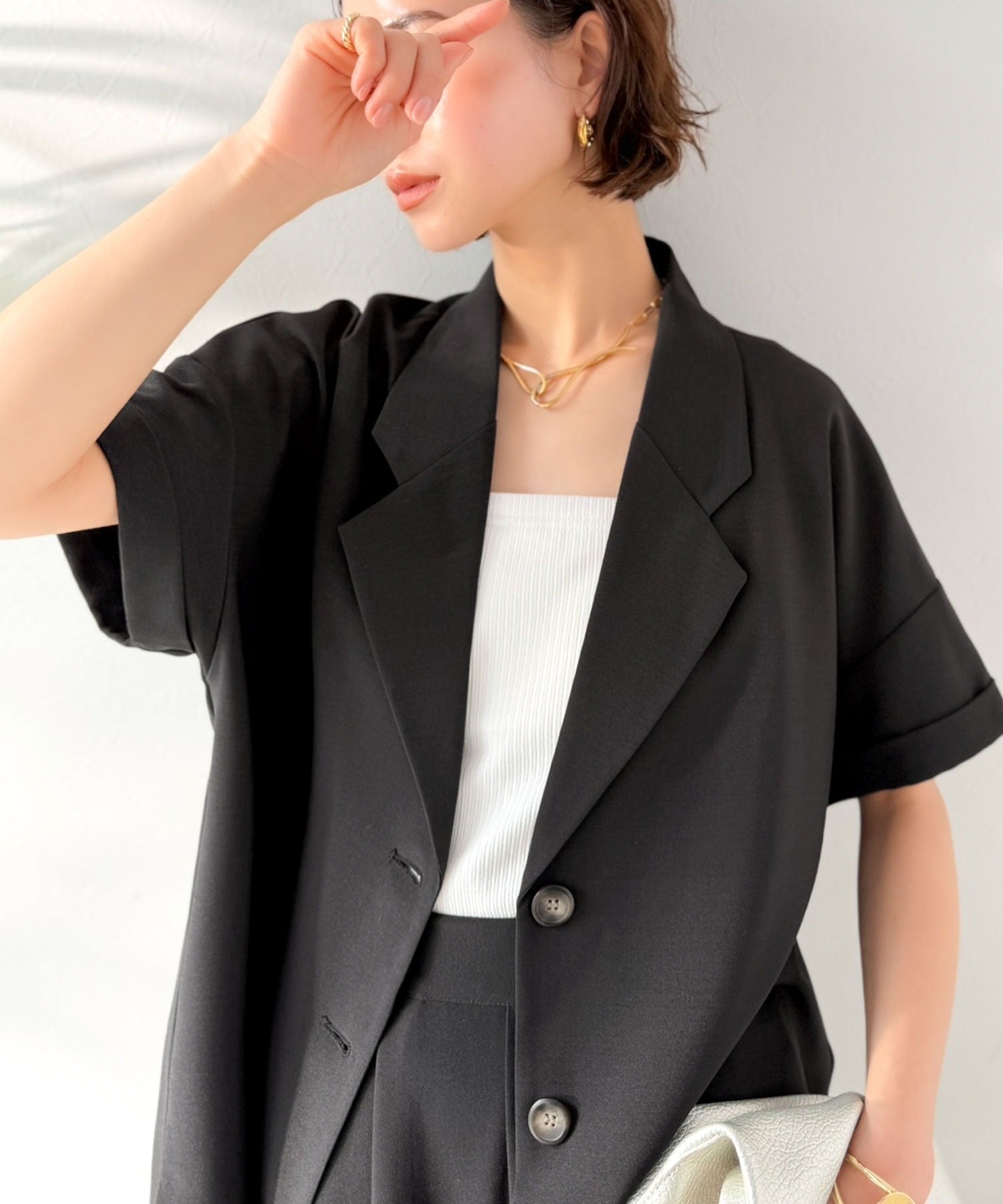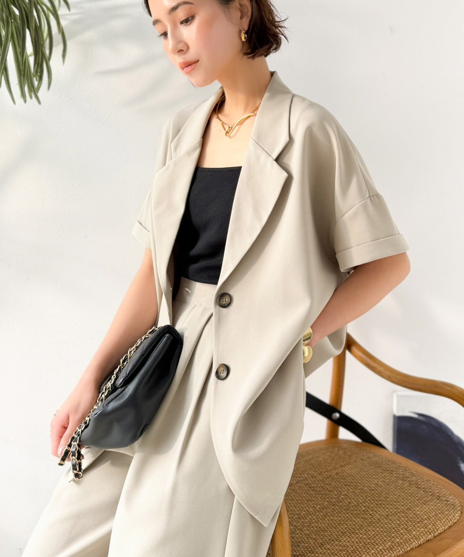 【Classical Evon】【イージーケア素材】軽やかに羽織れる上品さが魅力。イージーケア半袖ジャケット(セットアップ可能) ev1240125