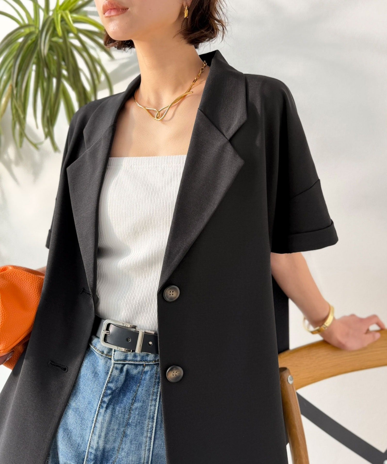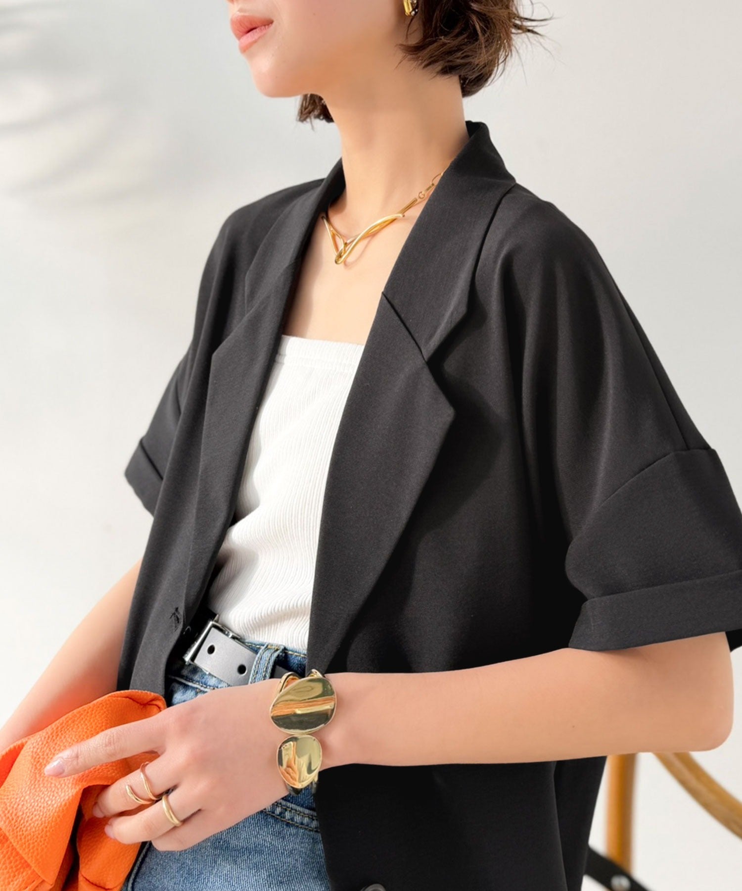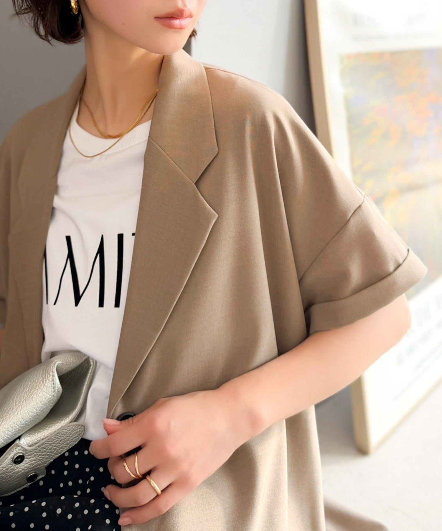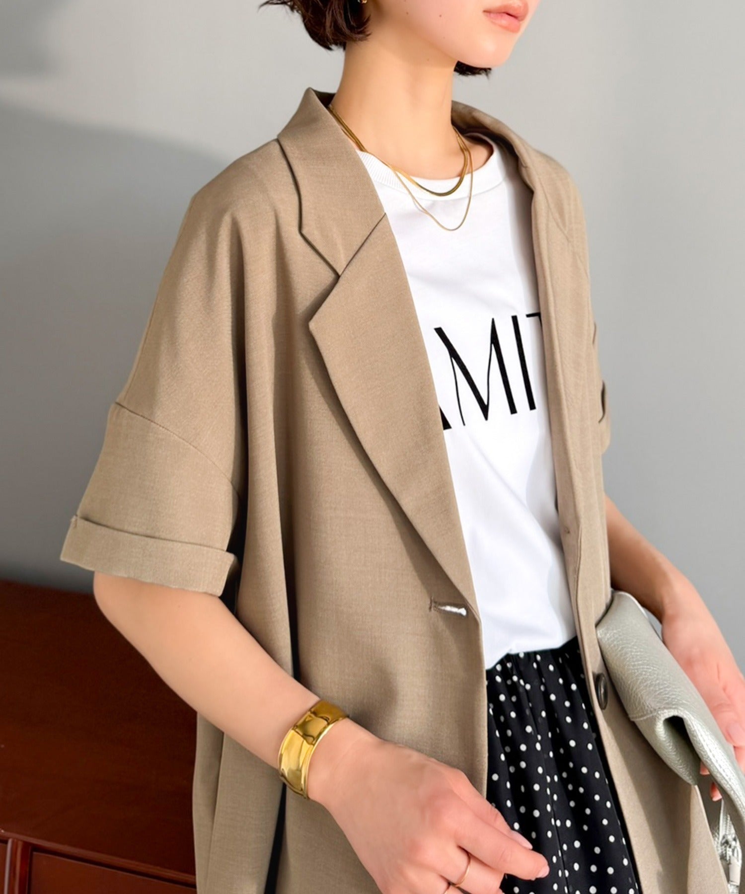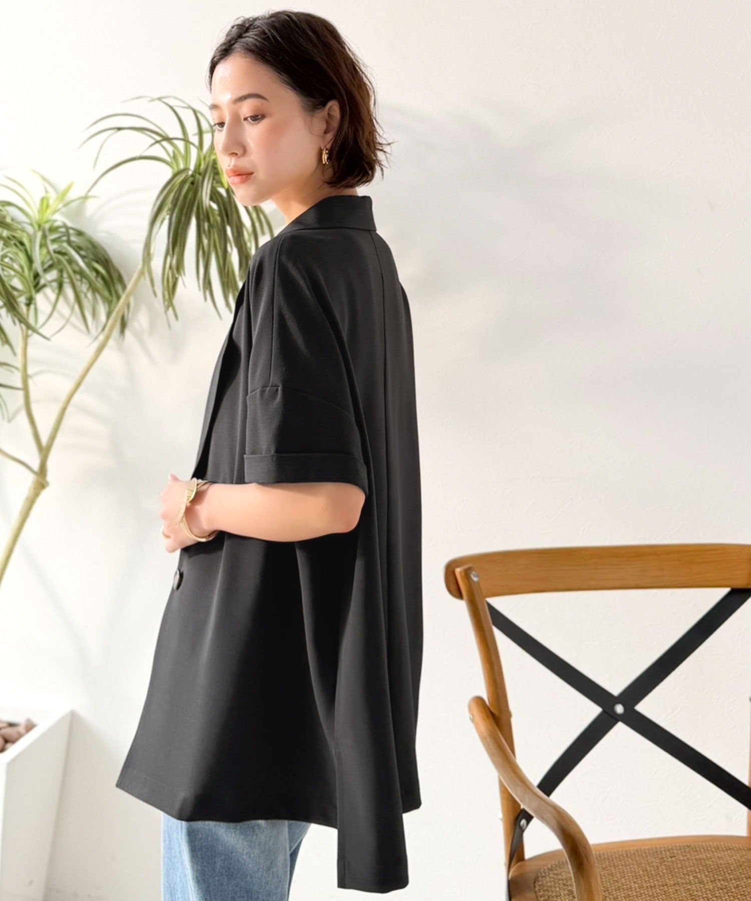 【Classical Evon】【イージーケア素材】軽やかに羽織れる上品さが魅力。イージーケア半袖ジャケット(セットアップ可能) ev1240125