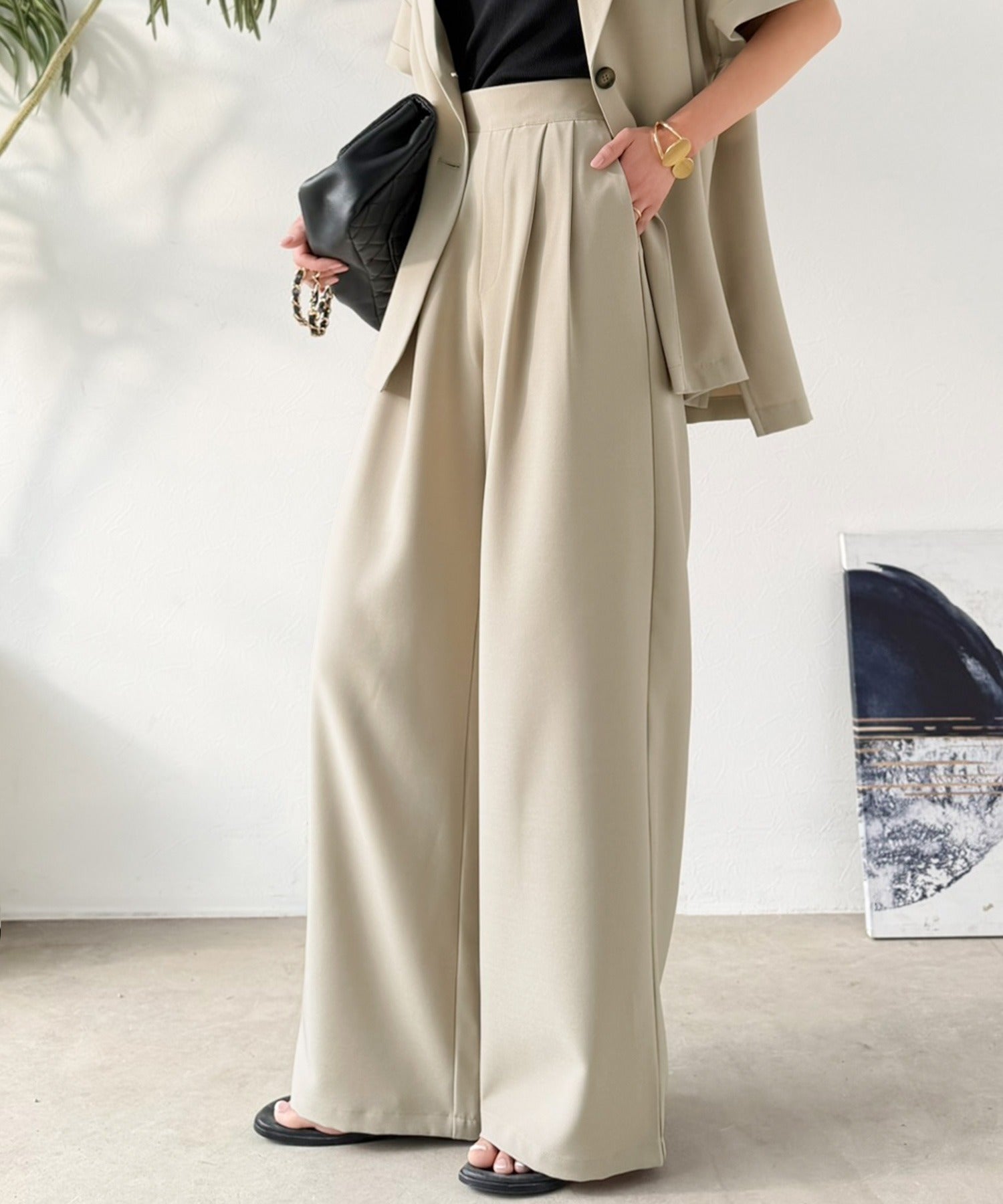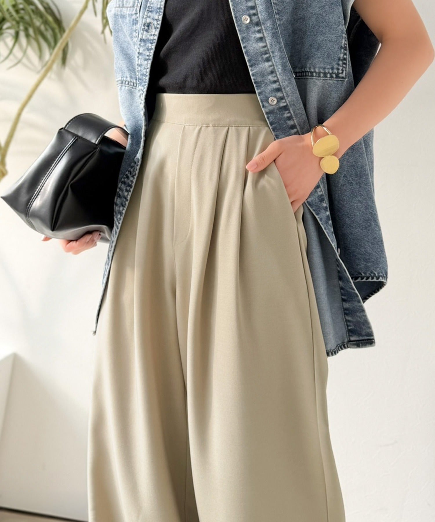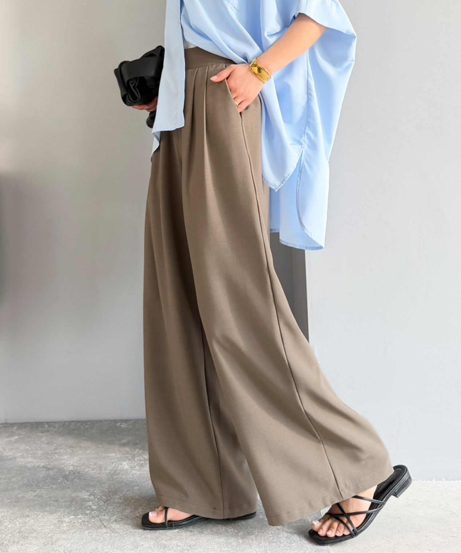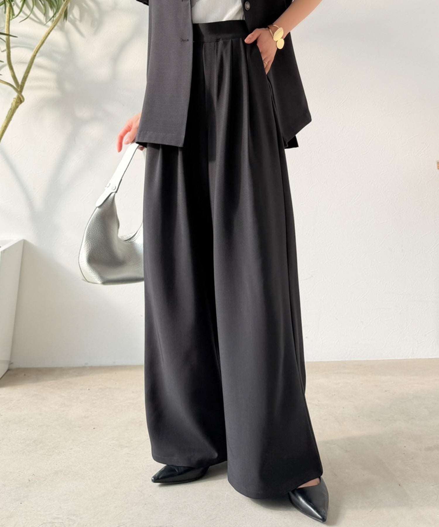 軽やかに穿けるワイドパンツ。