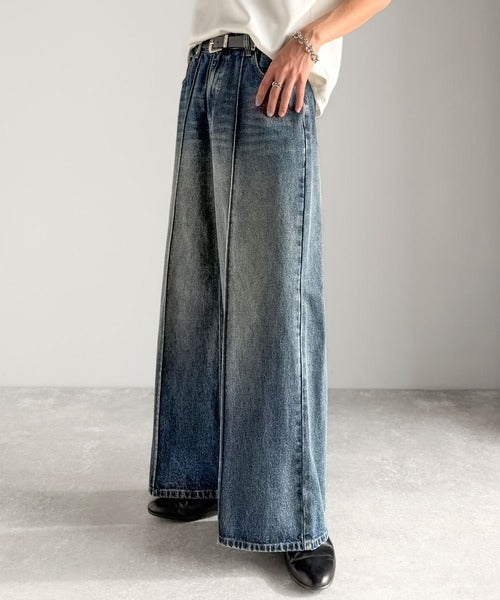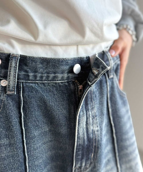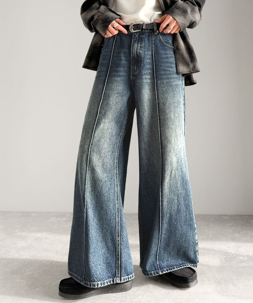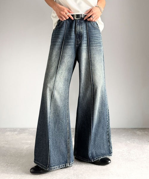《JaVaジャバコラボ》大人のほどよいルーズ感。ヴィンテージ加工ピンタック入りフレアデニムパンツ jo0900010