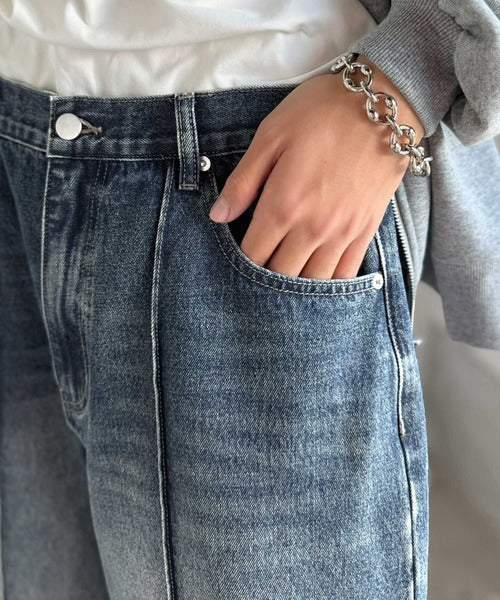 カジュアルはもちろん、モードなスタイリングにも相性の良い万能デニムです。