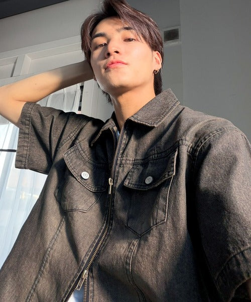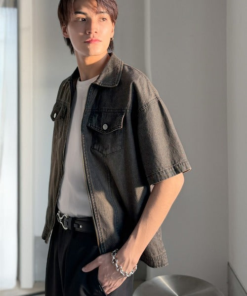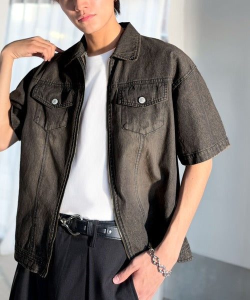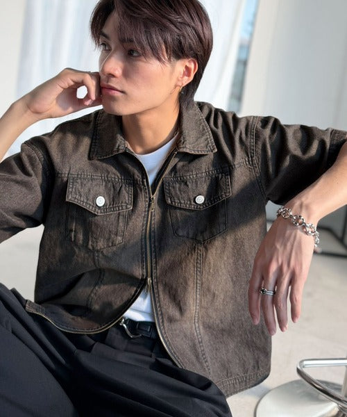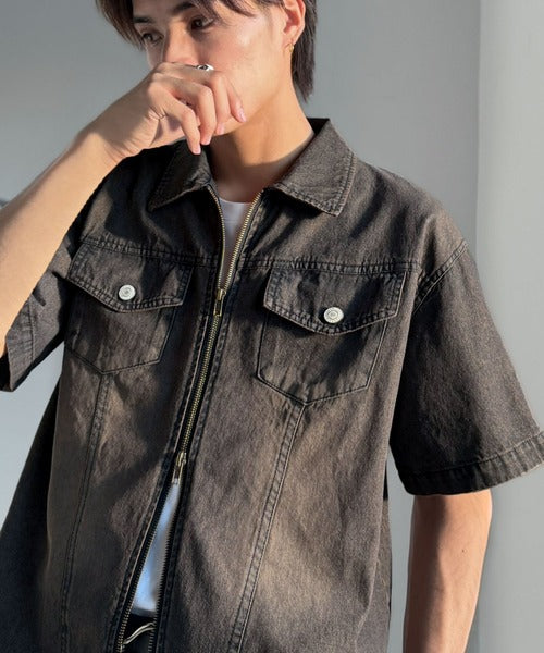 《JaVaジャバコラボ》ダブルジップ×着丈短めの最適解。ヴィンテージ加工ショート丈ダブルジップデニムシャツ jo1010040