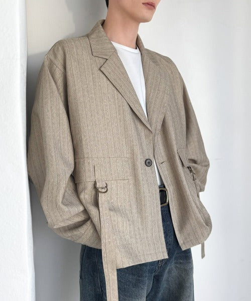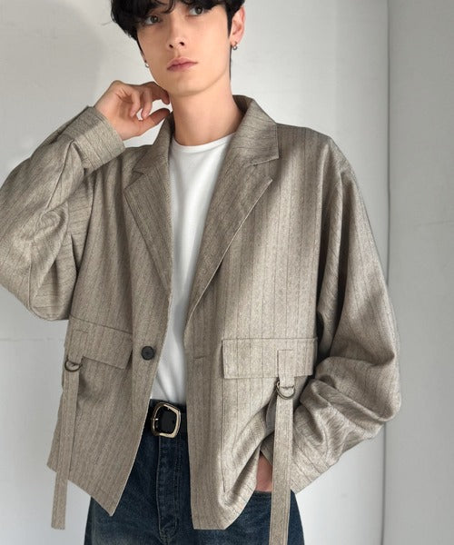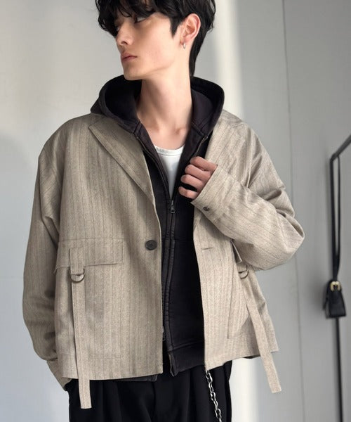 シンプル且つ洗練されたヘリンボーンストライプのシャツジャケット。