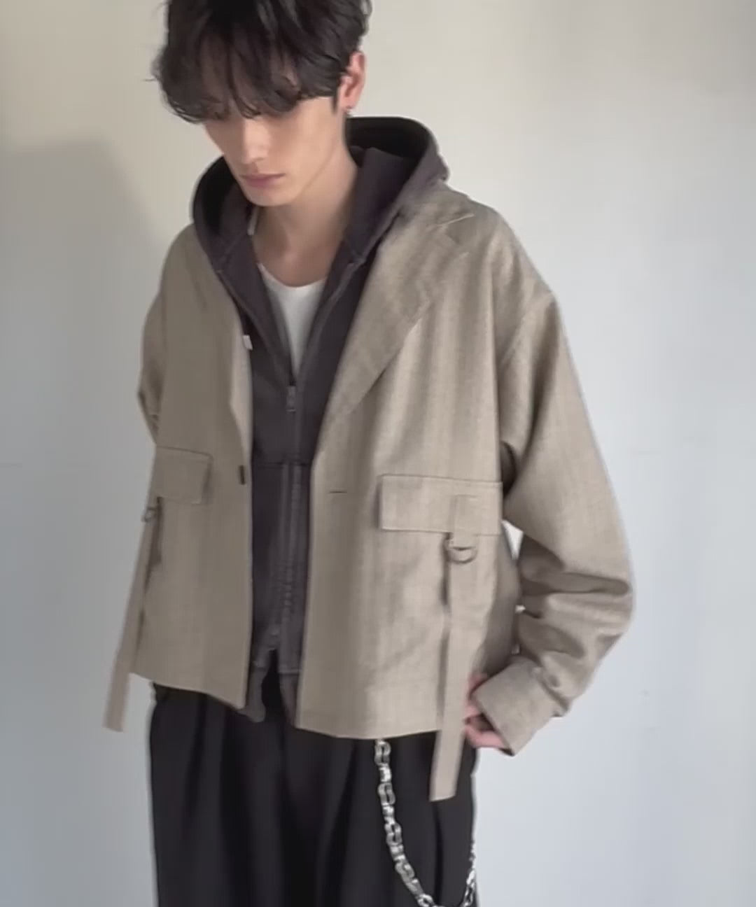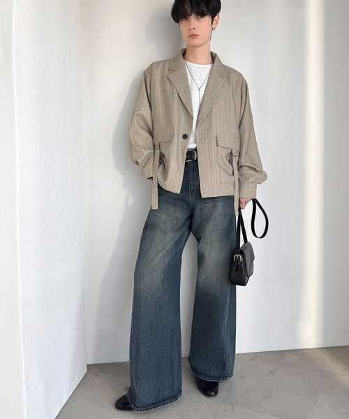 ベルト付きポケットがコーデのアクセントに。